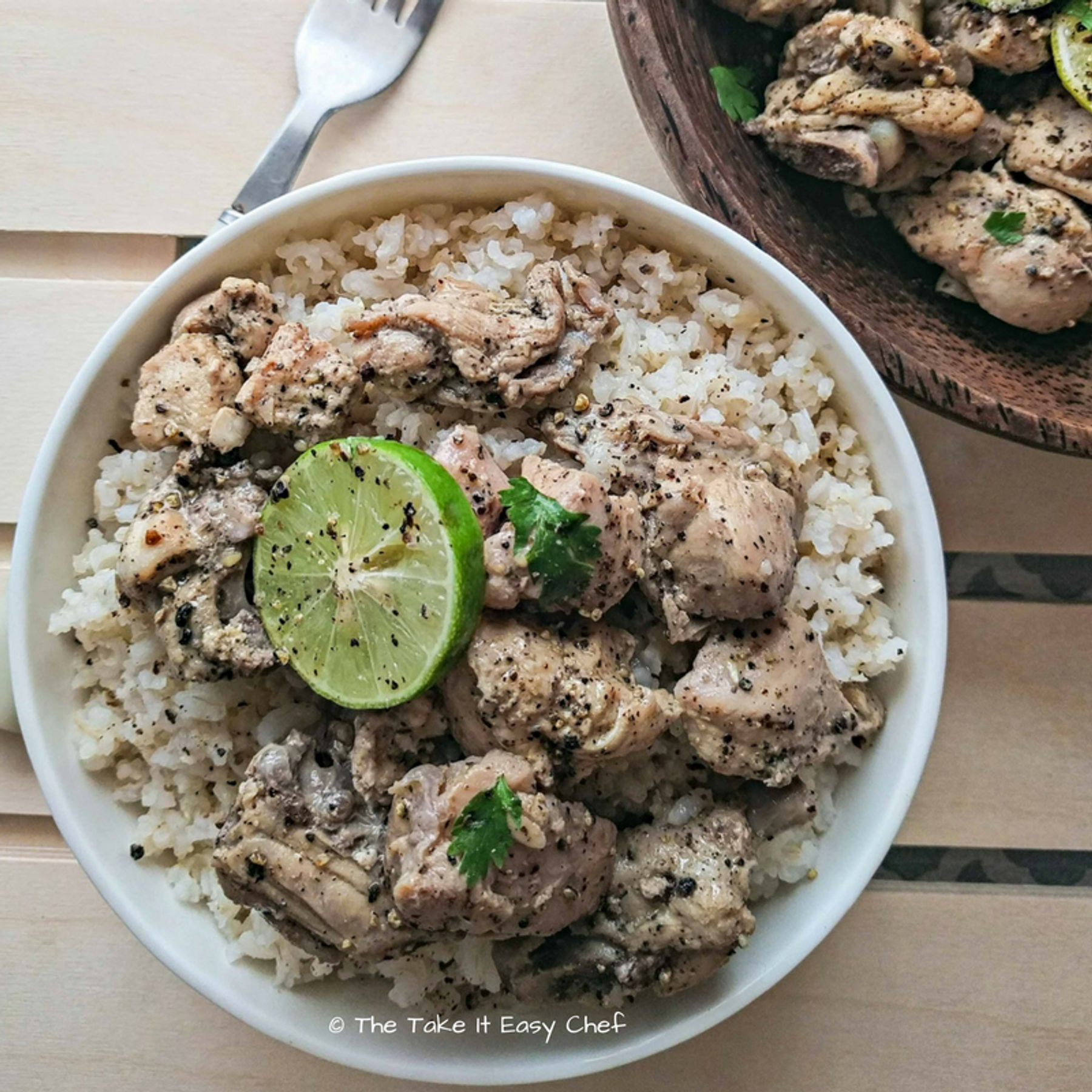 Bite size pieces of chicken pressure cooked with a seasoning of black pepper and salt, and a generous drizzle of lime juice and oil - easy, tasty & healthy!
