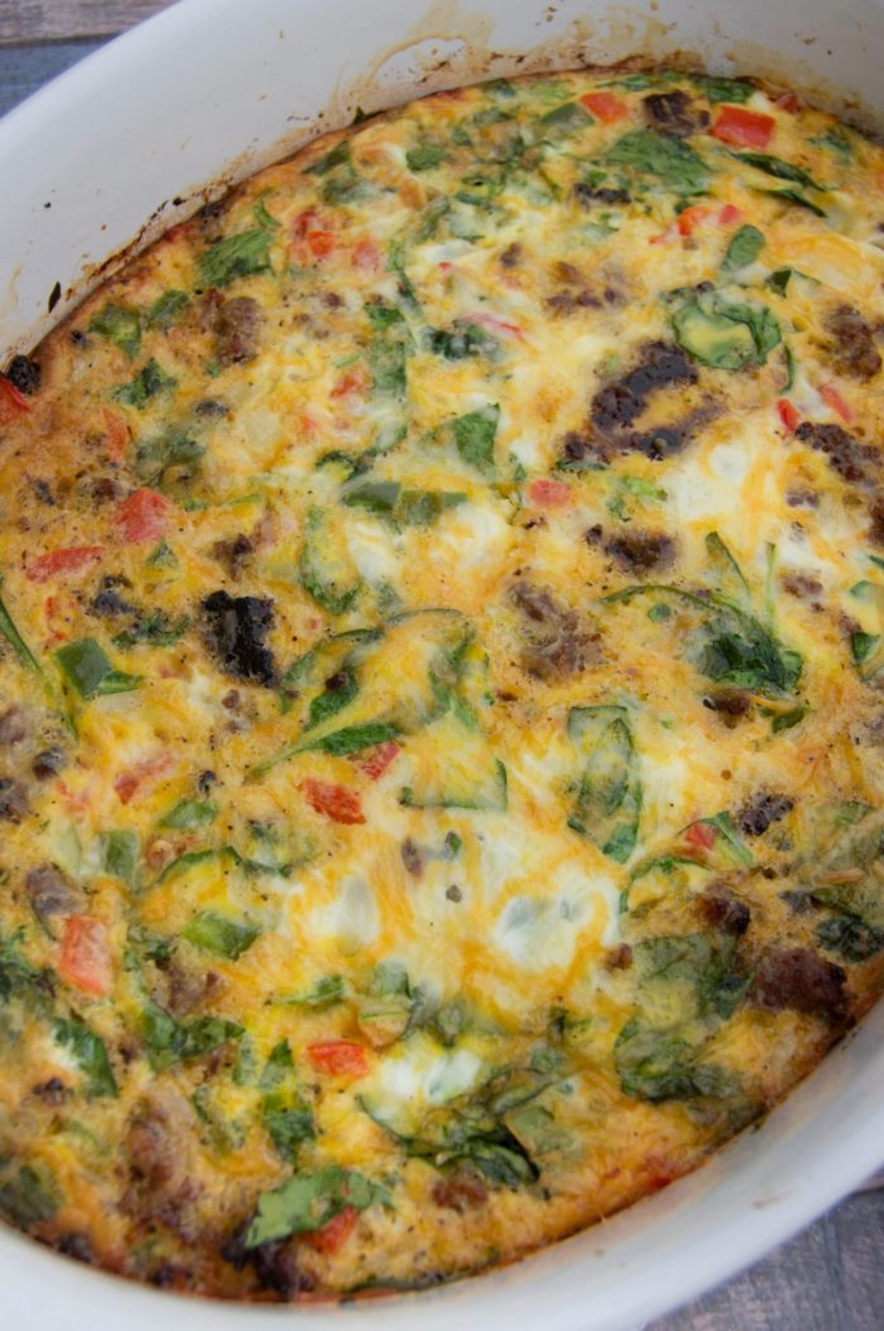 This is Easy Low Carb Breakfast Casserole is loaded is vegetables and full of flavor. I added sausage and baked until firm.