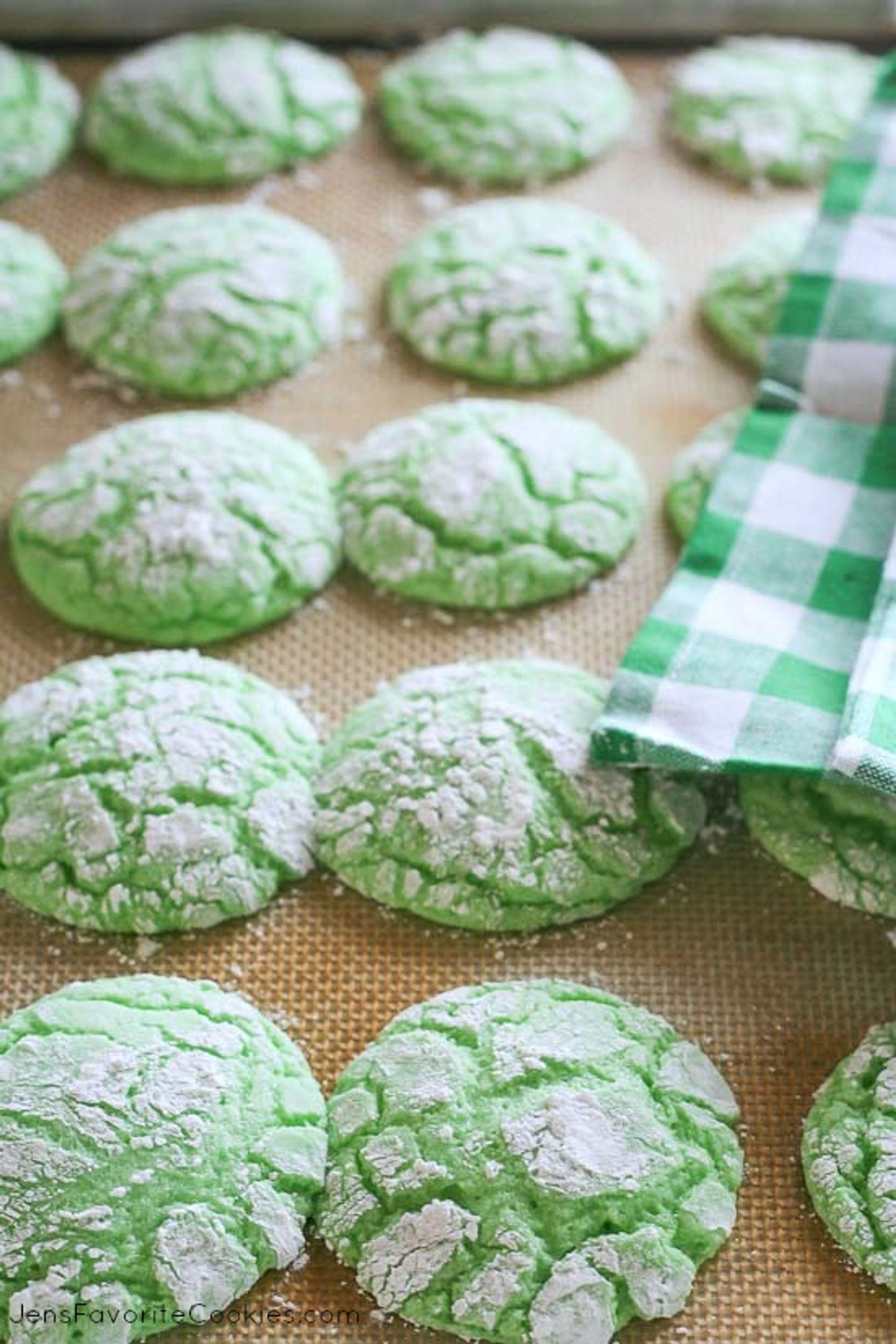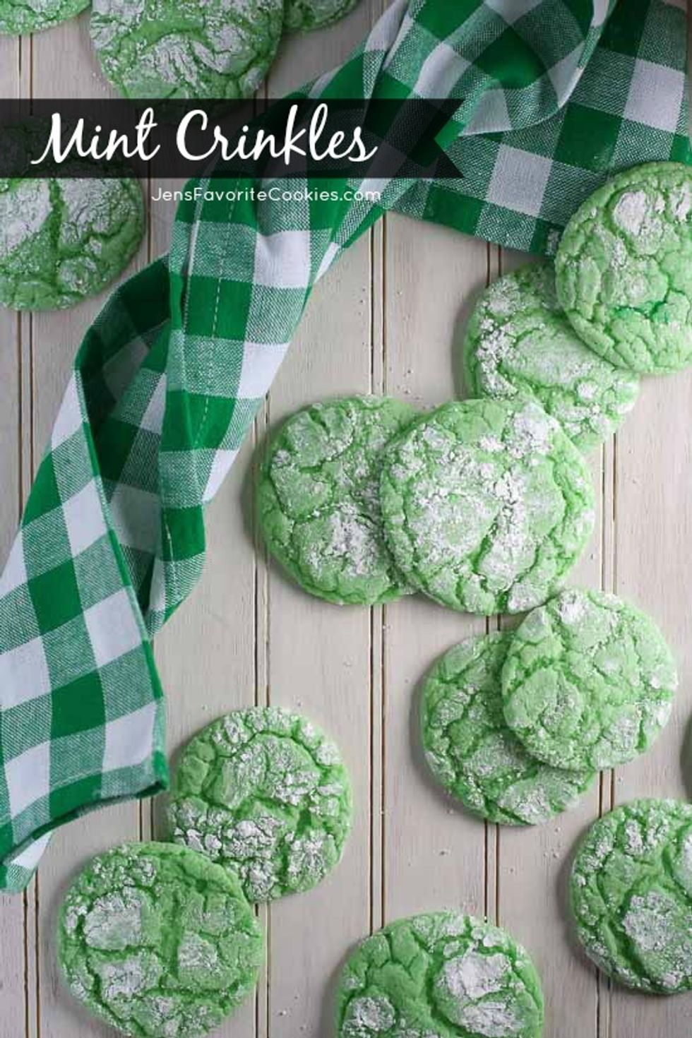 These easy to make crinkles use a cake mix, are flavored with mint, and rolled in powdered sugar.