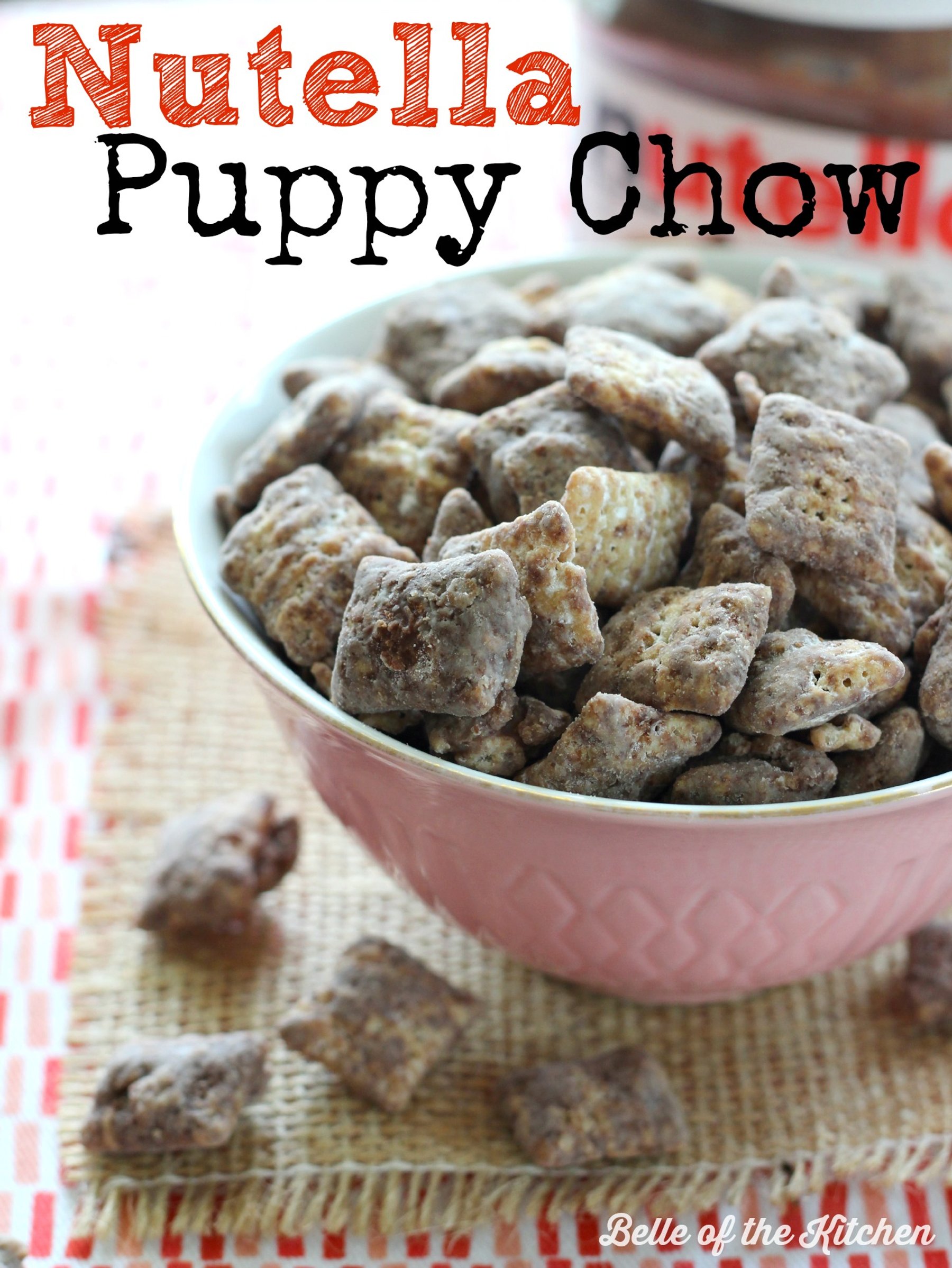 Do you love puppy chow? Try this AMAZING version that's made with Nutella instead of peanut butter! With just five ingredients, this addicting snack will keep you coming back for more!