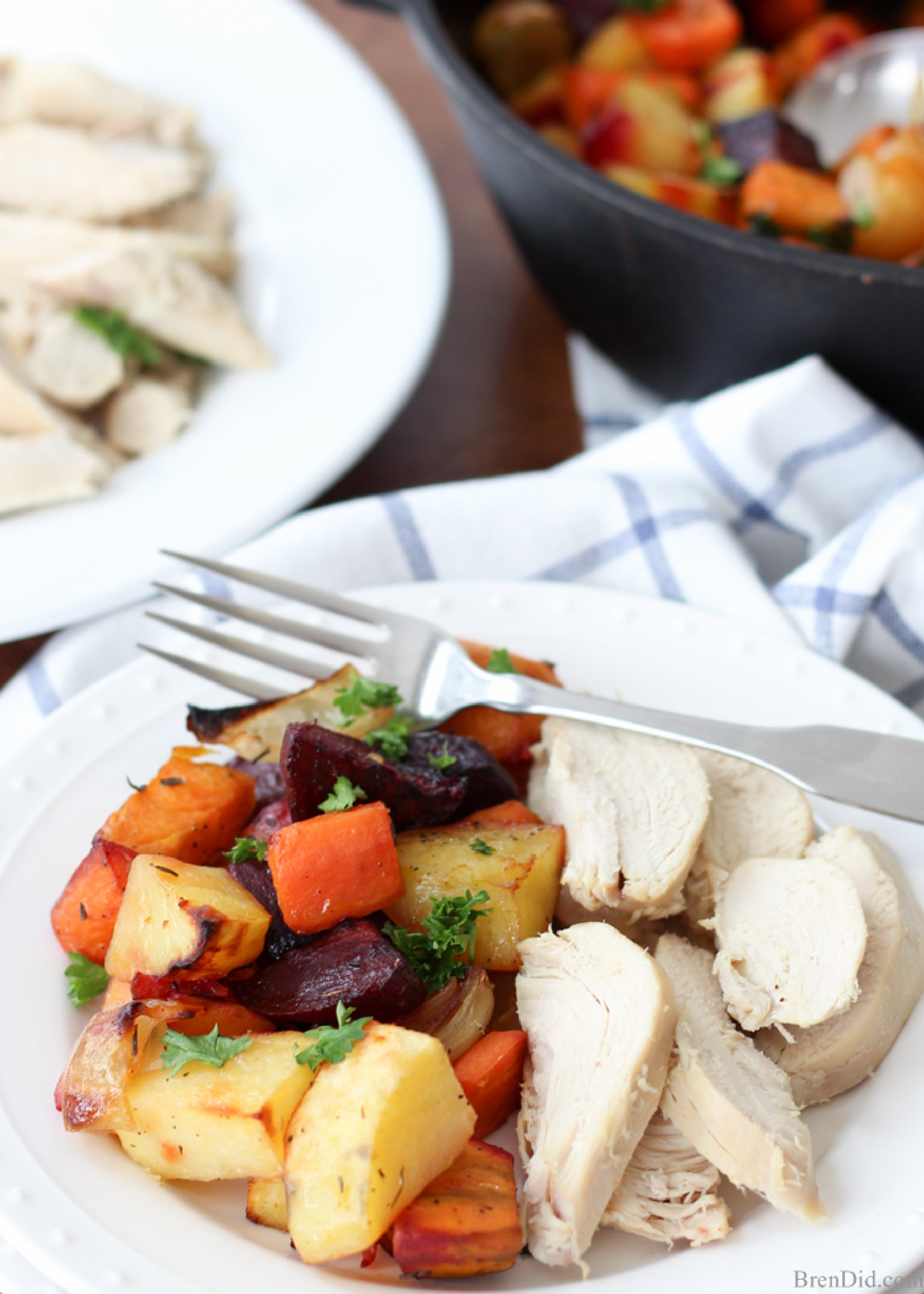 Easy Oven Roasted Root Vegetables are a healthy and delicious side dish. The recipe uses winter root vegetables including beets, potatoes, sweet potatoes, and onions. It is the perfect side dish for a simple dinner or a holiday feast. Try adding this easy and colorful vegetable side dish your next meal.