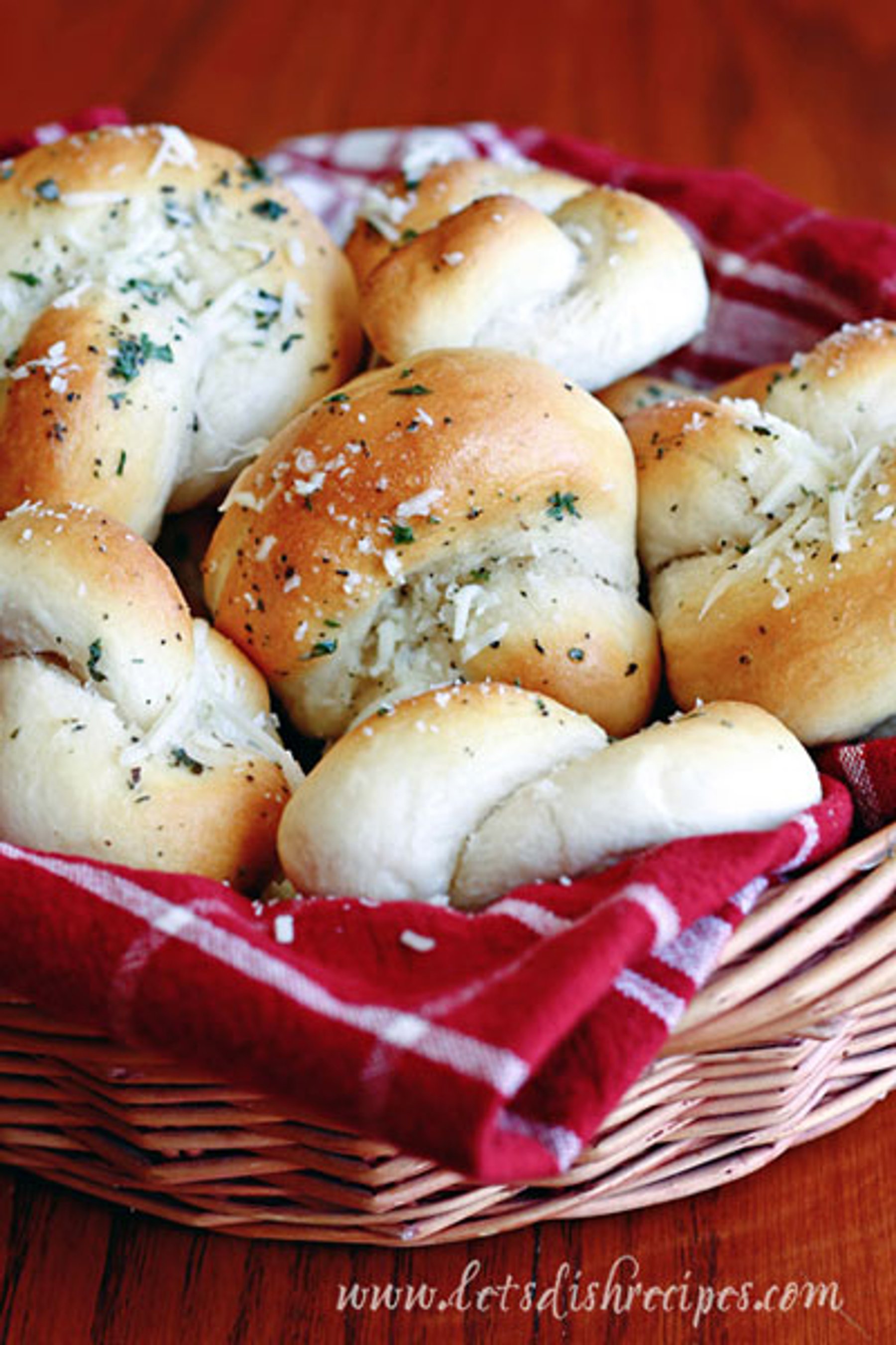 Made with prepared dough and covered in butter, garlic and Parmesan Cheese, these garlic knots are hard to resist.