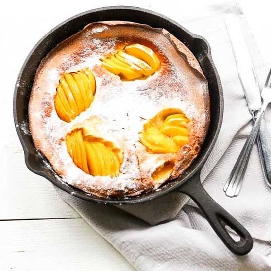 Peach clafoutis is a delicious dessert or coffee cake recipe. I have prepared it with lots of peach, but you can also use cherries, apple or blueberries. It's done in less than 30 minutes.