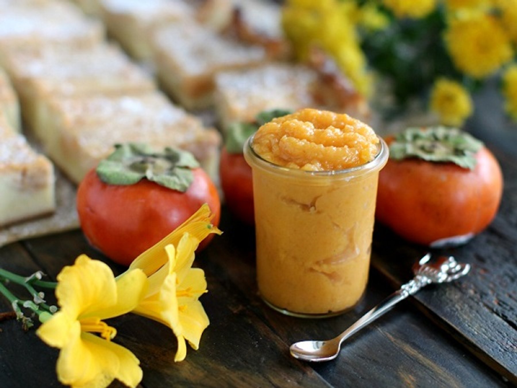 2.Transfer persimmon puree into a medium saucepan over medium-high heat and add the sugar. Boil for...