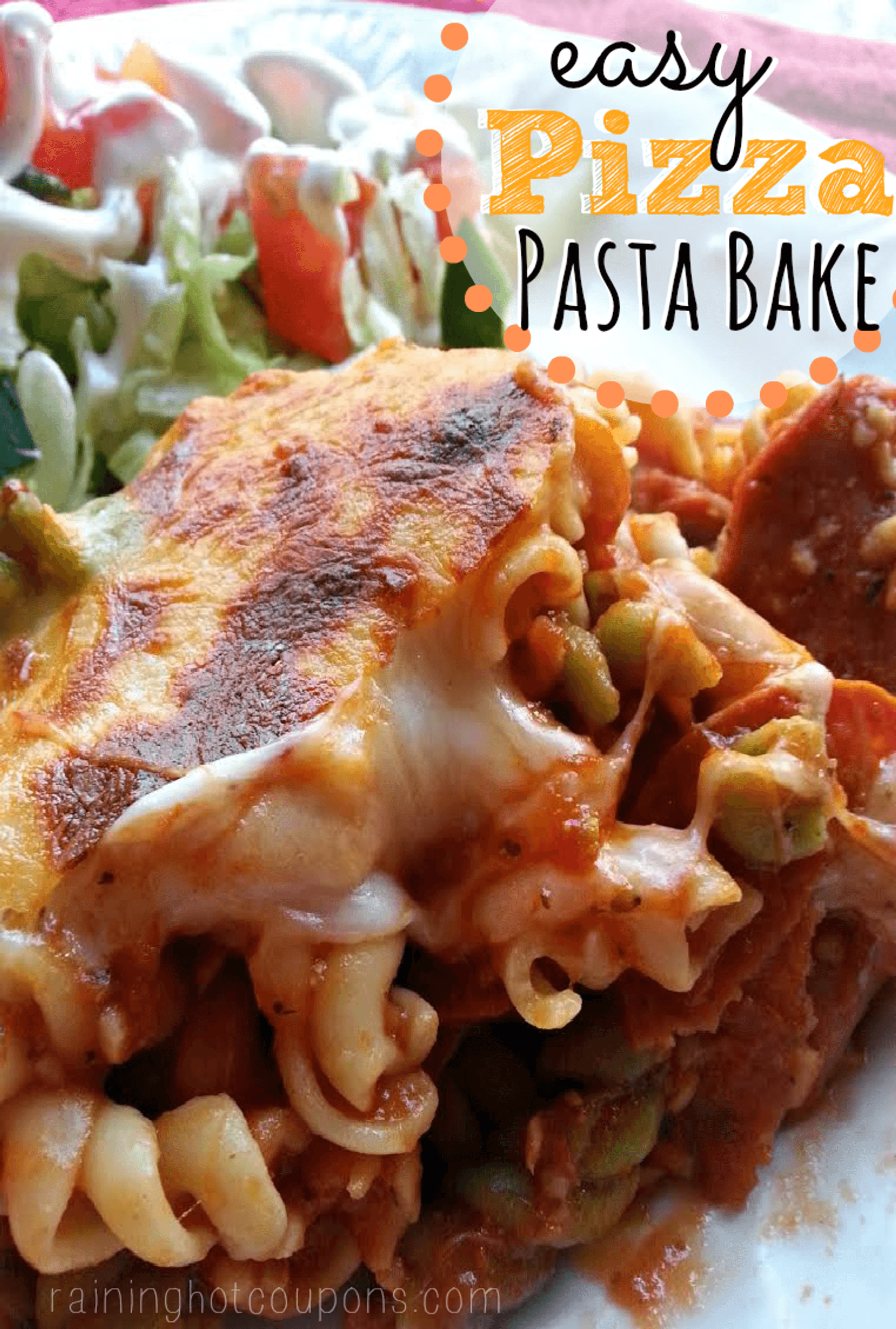 We all have nights where we just want something quick and easy for dinner but don’t want to spend a lot of time or money. This Easy Pizza Pasta Bake is ideal for saving money, satisfying a crowd and throwing together in minutes. My favorite part about this meal is how flexible it is for individual family taste buds. We use basic ingredients for our kids that prefer fewer veggies and traditional “pizza” taste of cheese and pepperoni but we also split it and make half with just those ingredient