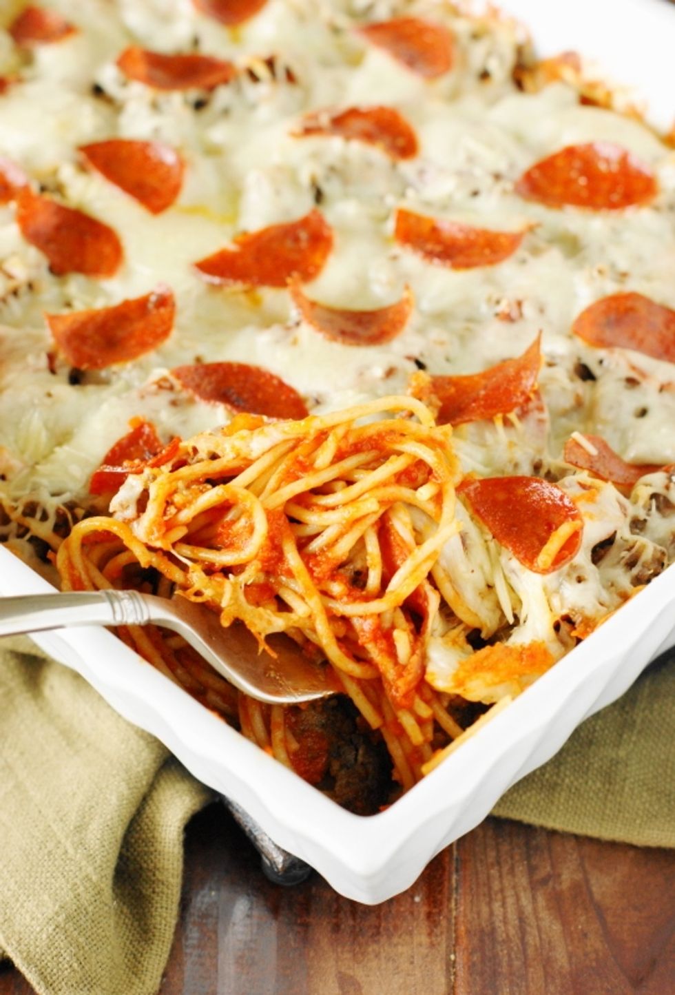 Pizza ~ always a favorite. Spaghetti ~ always a favorite. So why not put them together in one delicious dish? Why not, indeed! With this Pizza Spaghetti Bake, you can enjoy two family favorites in one quick-and-easy dinner.