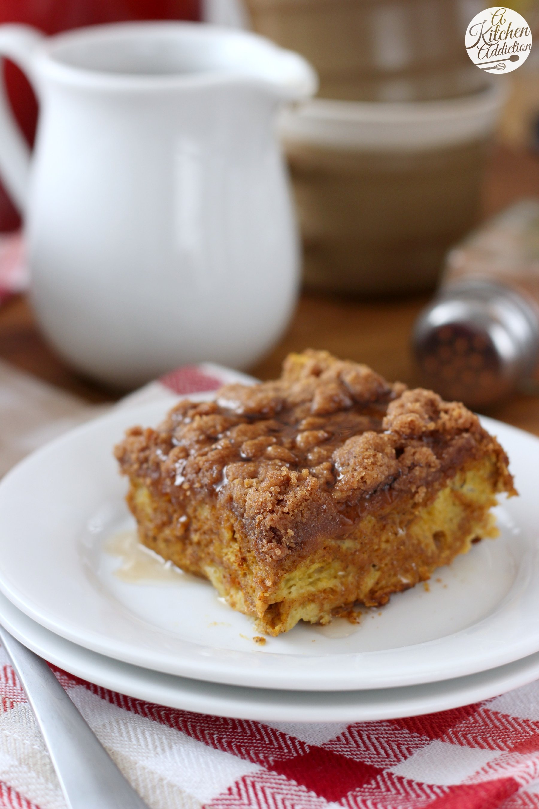 An easy, make ahead pumpkin french toast bake with a hearty topping of streusel!