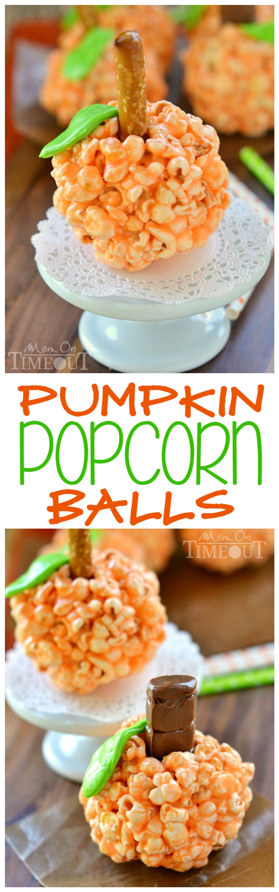 Fun and oh-so delicious, these Pumpkin Popcorn Balls are made with marshmallows for the ultimate soft and chewy treat! Perfect for Halloween and Thanksgiving!