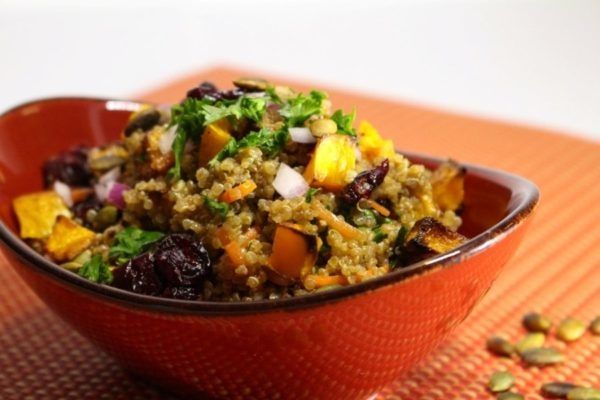 Easy Quinoa Salad with Roasted Butternut Squash and Pumpkin Honey Mustard Vinaigrette