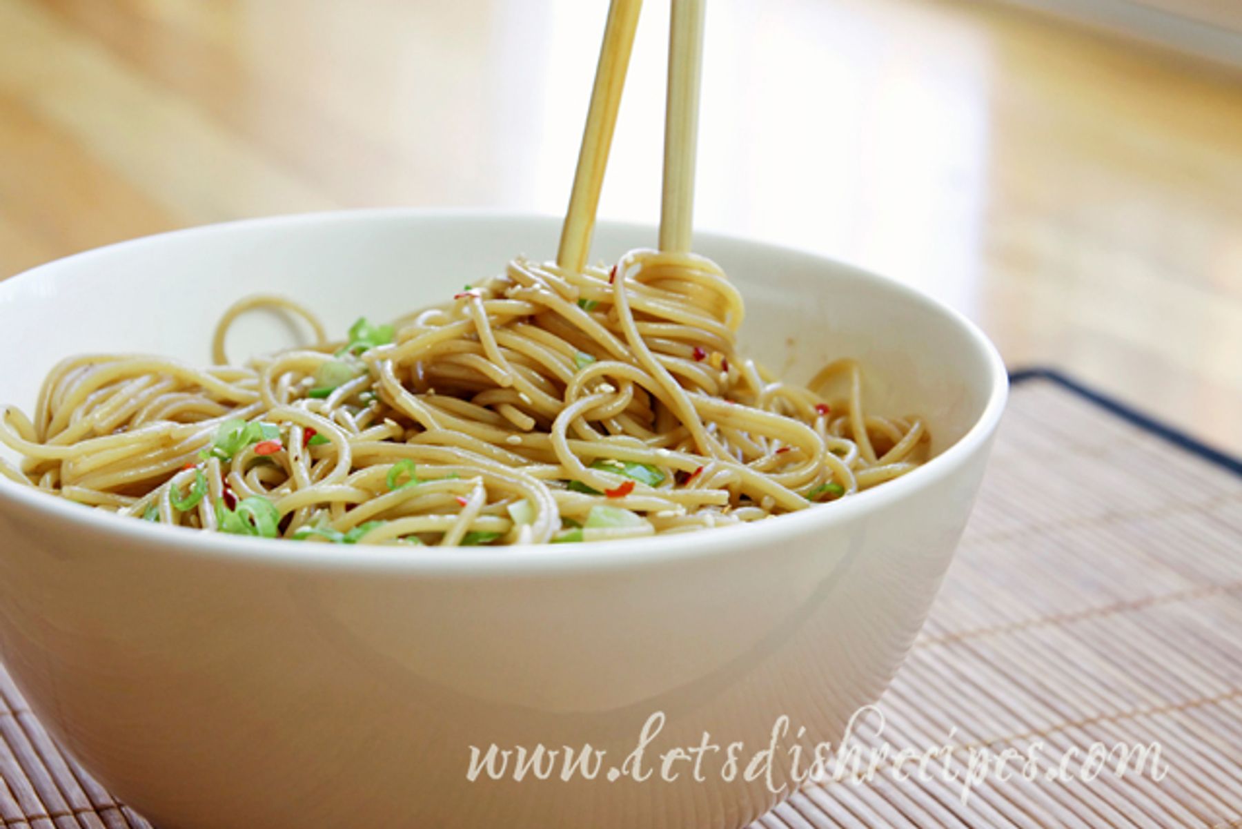 Cook pasta according to package directions; drain. Meanwhile, whisk remaining ingredients (except green onions) together in a large bowl. Pour drained noodles into bowl with soy sauce mixture and toss until...