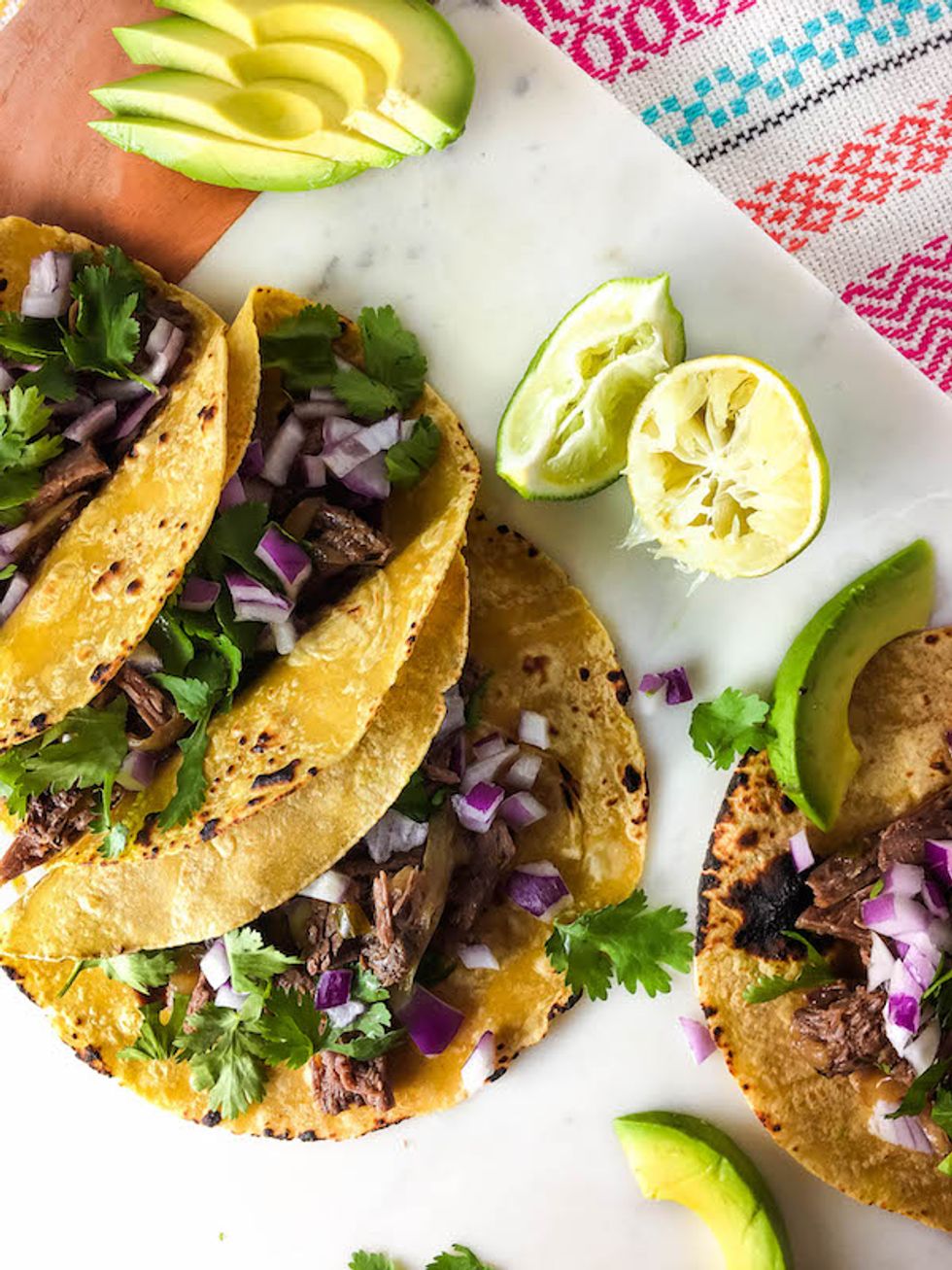 Delicious, tender, fall-apart meat stuffed in corn tortillas and topped with avocado, cilantro, and onion – these Easy Shredded Beef Tacos are so simple and tasty!