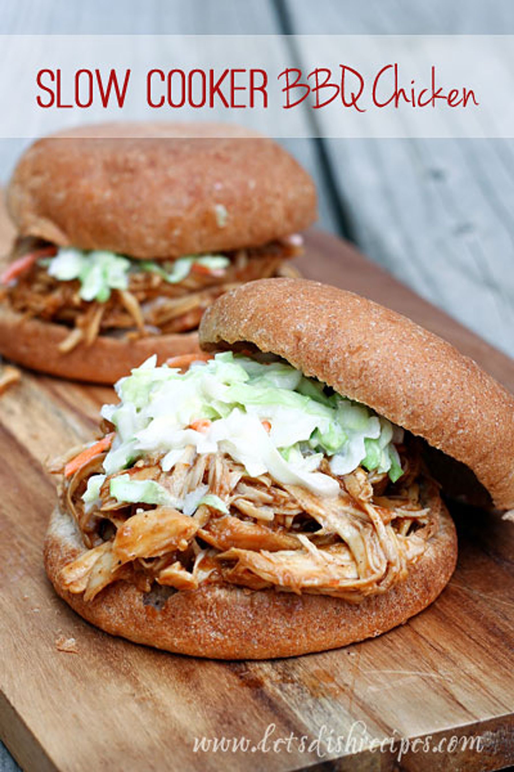 Slow cooker barbecue chicken with a few special ingredients to make it extra tasty.