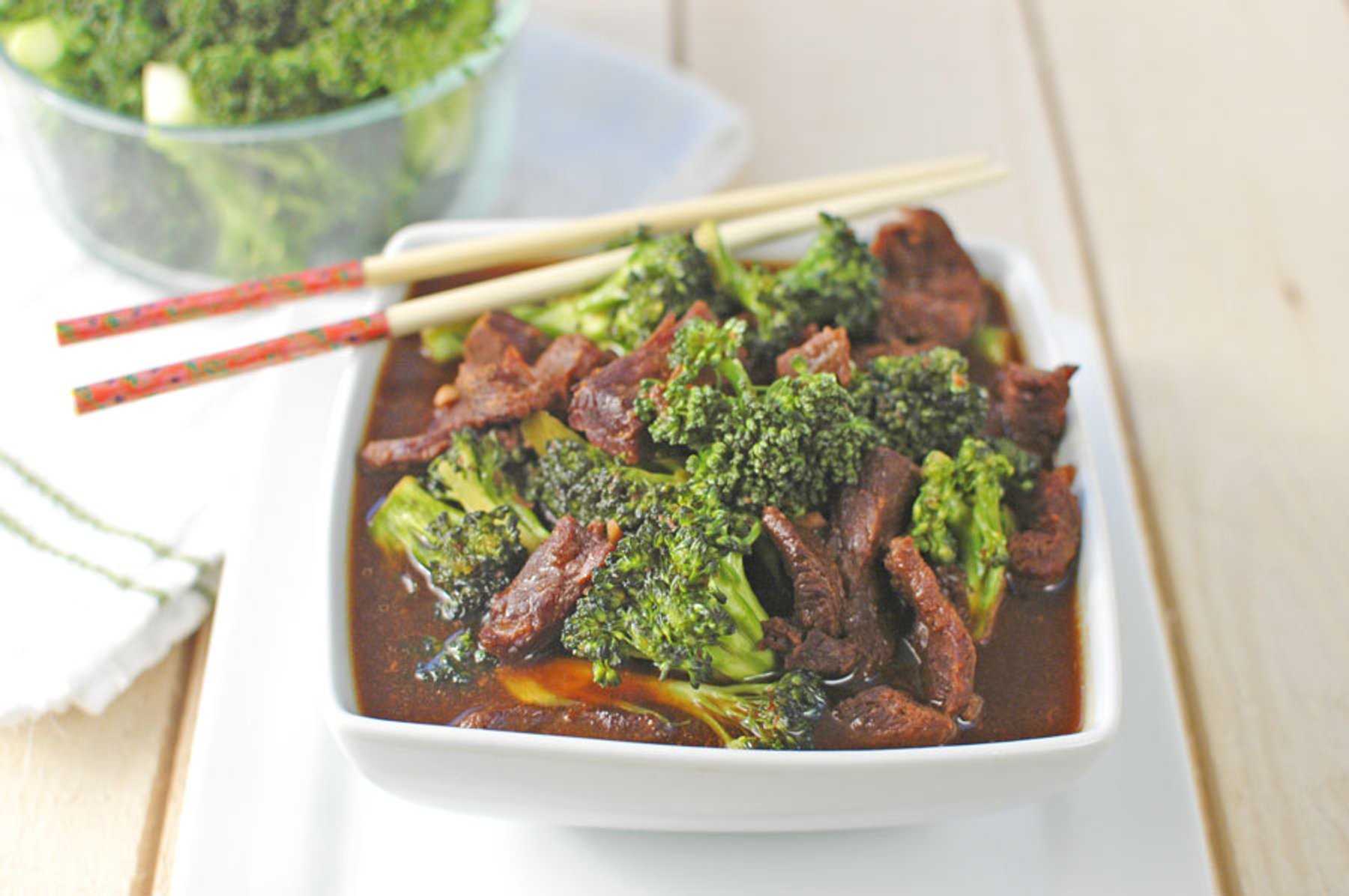 - In a medium bowl, whisk together the beef broth, soy sauce, brown sugar, sesame oil and minced...