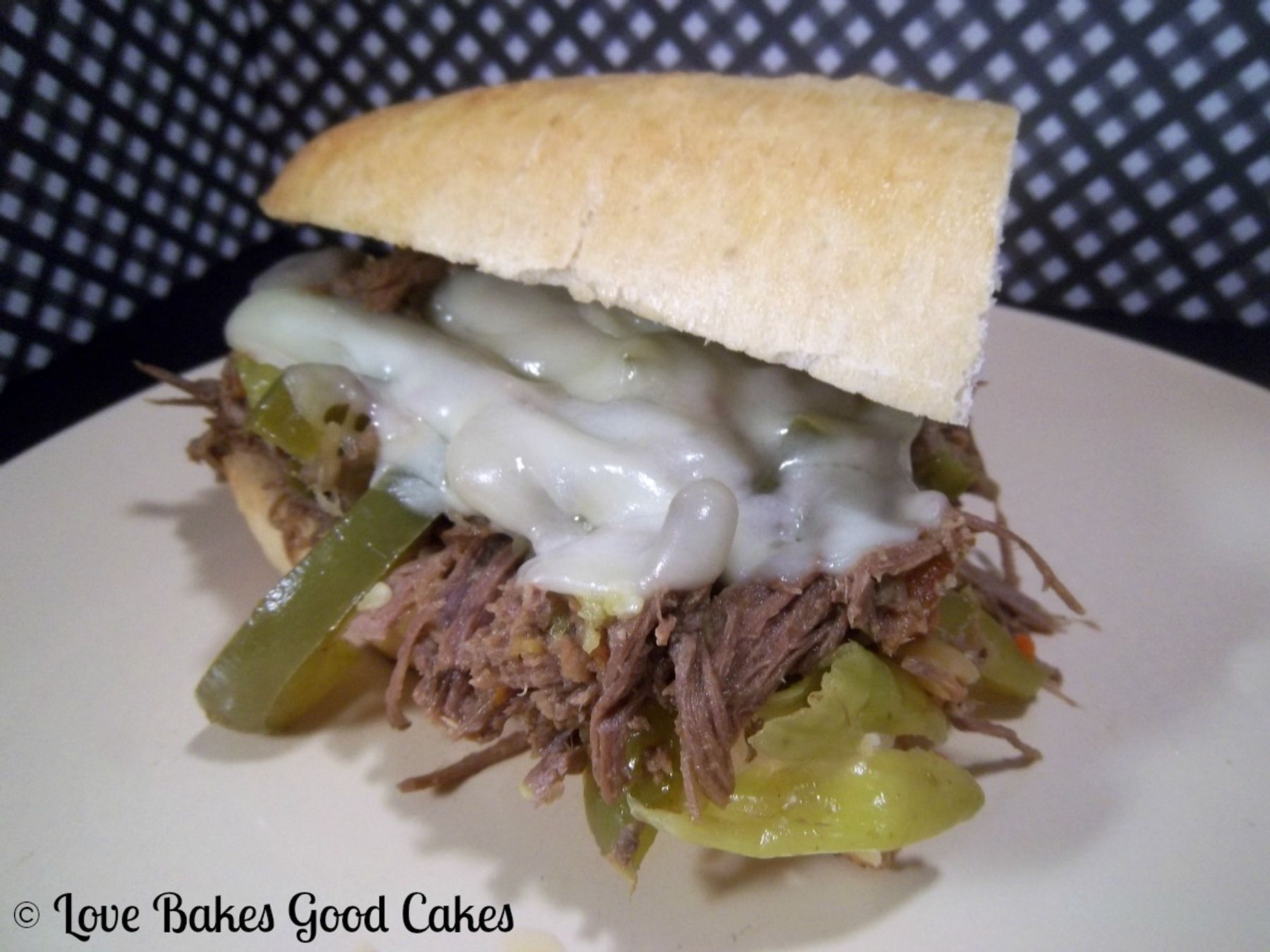 Onions, roasted peppers, sliced pepperoncini (optional)