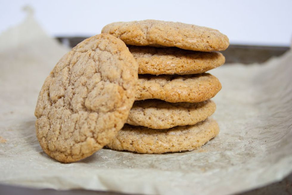 Traditional snickerdoodle cookies rolled in a mixture of white sugar and cinnamon.