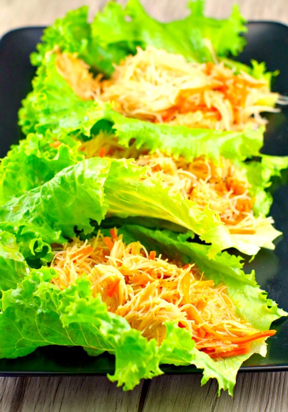 EASY SRIRACHA CHICKEN NOODLE LETTUCE WRAPS