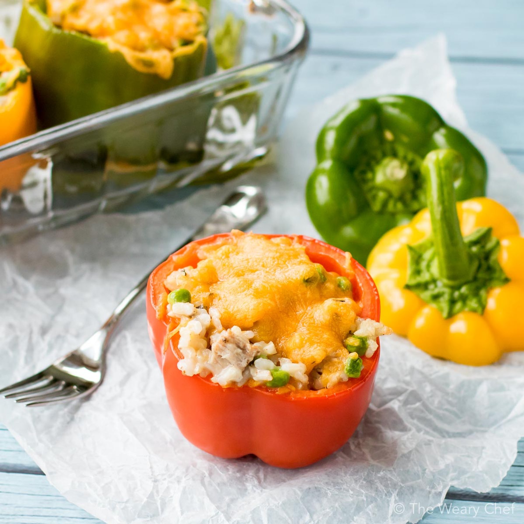 Dinner doesn\\\'t get easier than these pork and rice stuffed peppers! You only need six ingredients and a little time to get these cheesy peppers on the table tonight!