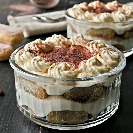 Easy and romantic dessert for two to four people, served in individual ramekins. No bake needed, no raw eggs made with Baileys!