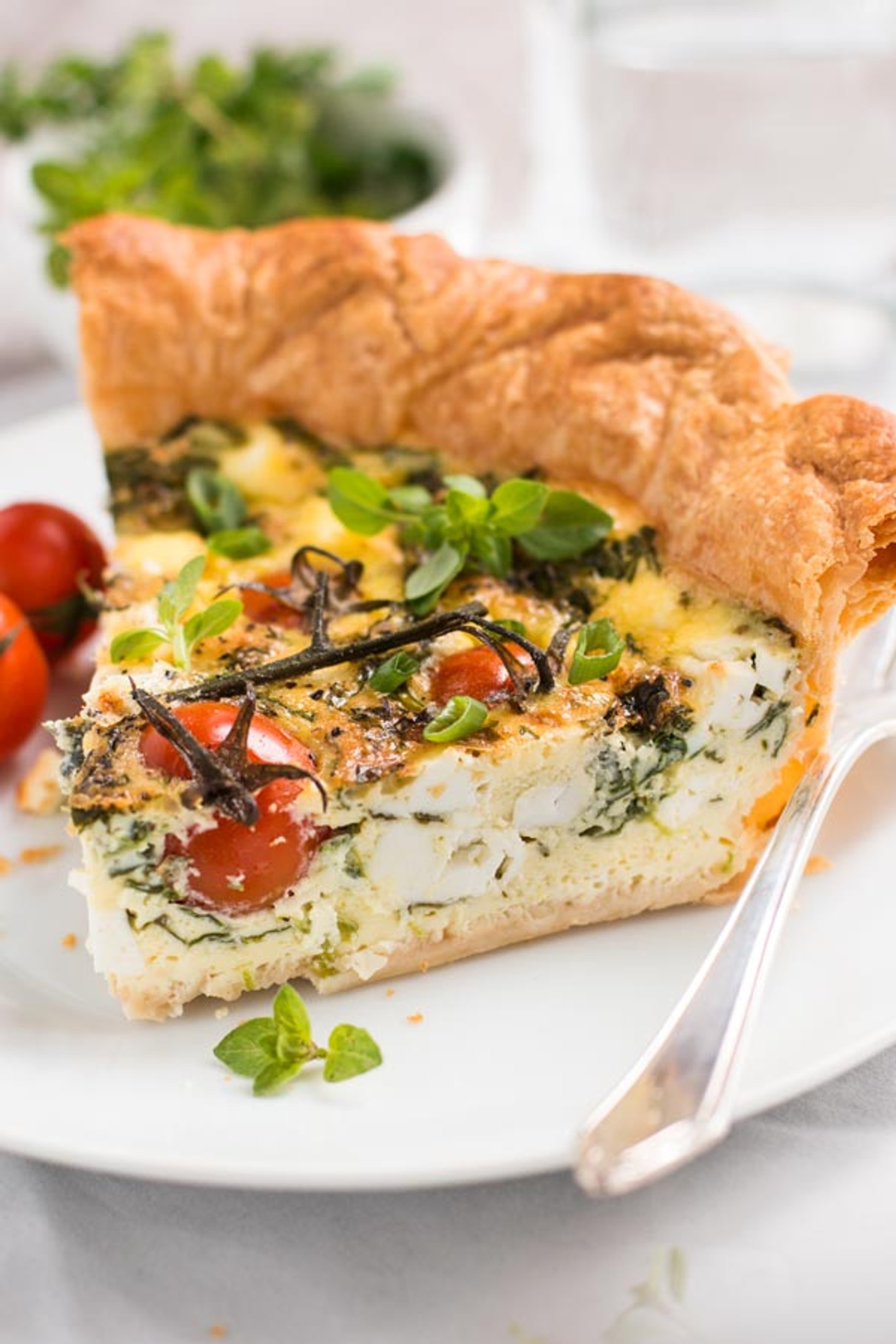 This Easy Tomato Spinach Feta Quiche is packed with flavor and guaranteed to be a hit at your next brunch! Can easily be made a day in advance.