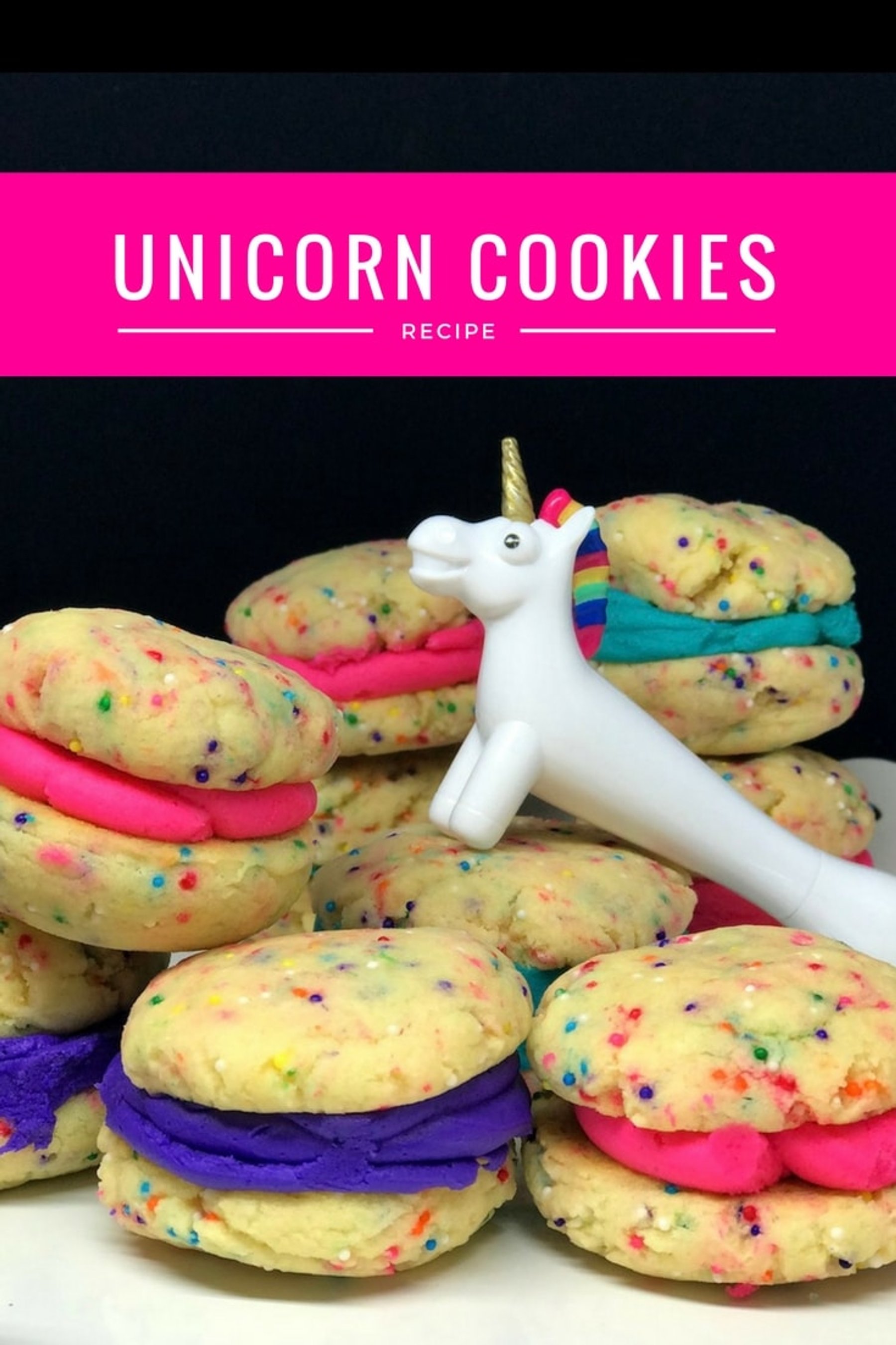 You will love this Unicorn Cookies recipe! It's made with a cookie mix and has a a homemade vanilla buttercream icing that you can make any color you want! This is part of our Unicorn Party menu!