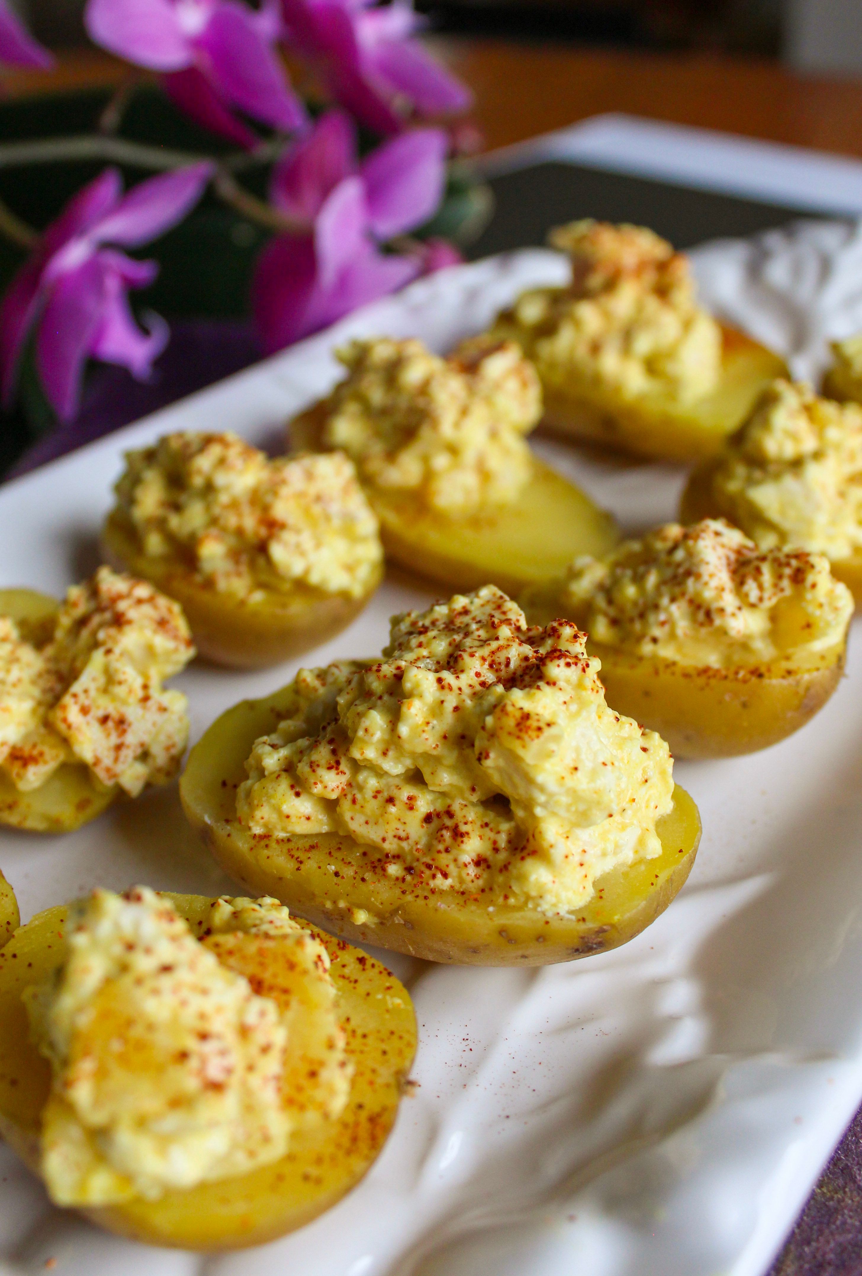 Easy vegan deviled eggs. Perfect vegan appetizer to bring to a party and share with your friends. Gluten free, dairy free and high in protein. Easy to make and delicious