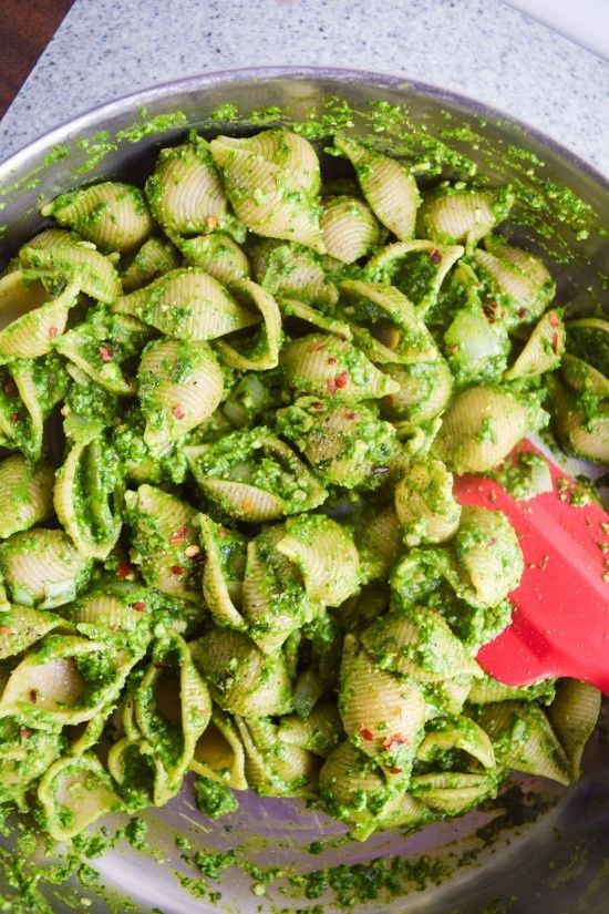 Make the vegan spinach pesto. Add the cashews to your food processor and pulse a few times until crumbled. Add the spinach, basil, non-dairy milk, lemon juice, salt, and pepper, and continue to pulse,...