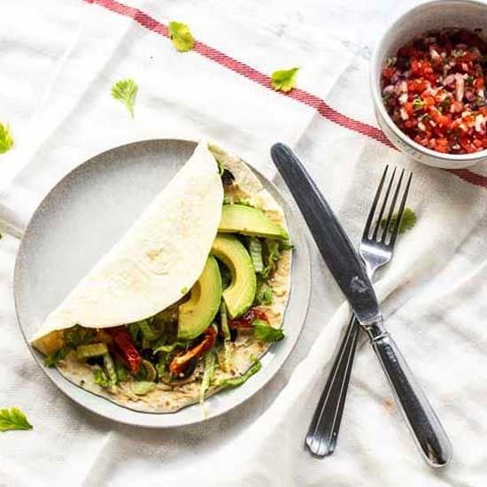 Looking for a tasty vegan wrap for lunch or dinner? Then this recipe is for you. It is easy to make with homemade hummus, avocado,sun dried tomatoes and black olives.