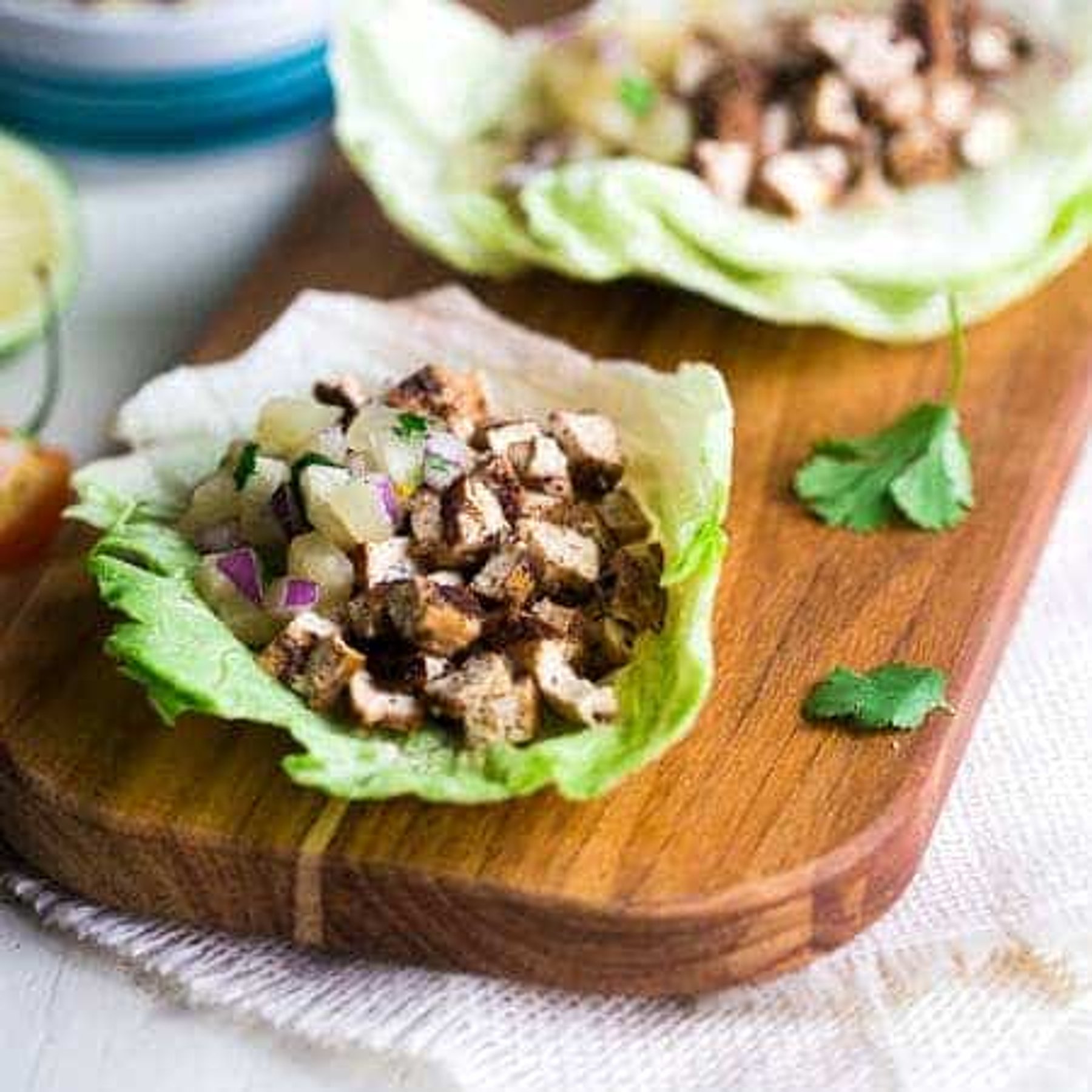 Easy Vegetarian Lettuce Wraps with Jerk Grilled Tofu