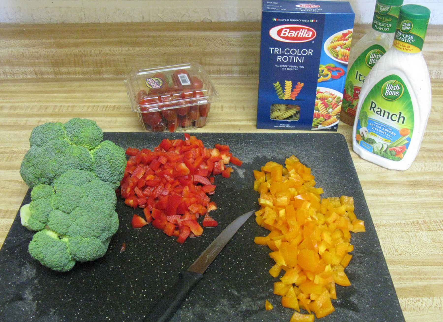 This is a quick and healthy pasta salad with lot's of fresh vegetables. Goes great with most meals.