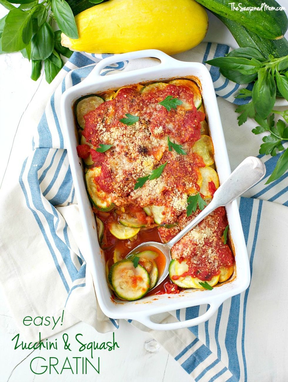 You can never have too many zucchini recipes at this time of year, right?! With layers of zucchini, summer squash, tomatoes, herbs, and Parmesan cheese, this Easy Zucchini and Squash Gratin is a healthy, clean eating side dish to enjoy for the season!