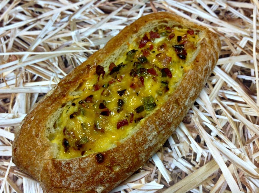 An easy way to enjoy a weekend breakfast or weeknight dinner. A hulled out roll filled and baked with your favorite omelette ingredients.