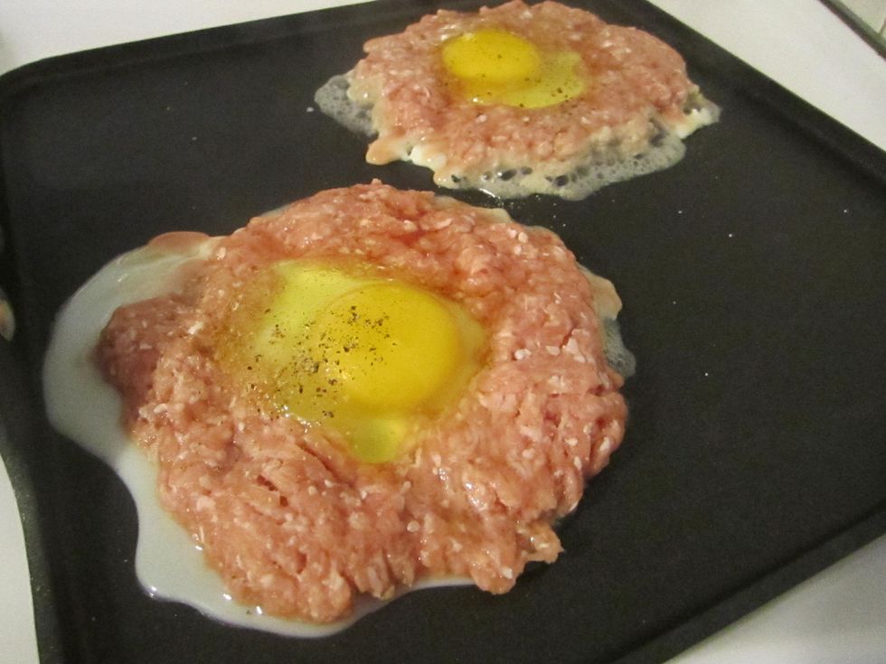 A juicy meat patty with a delicious egg cooked right in the middle. Hey-don't knock it, til you try it :)