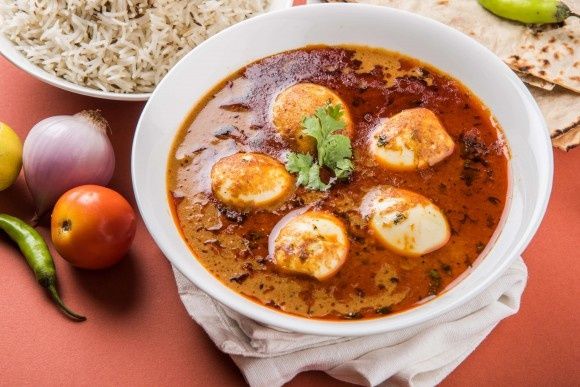 A healthy indian style egg masala with low carbohydrates and fat and lots of spices and veggies.