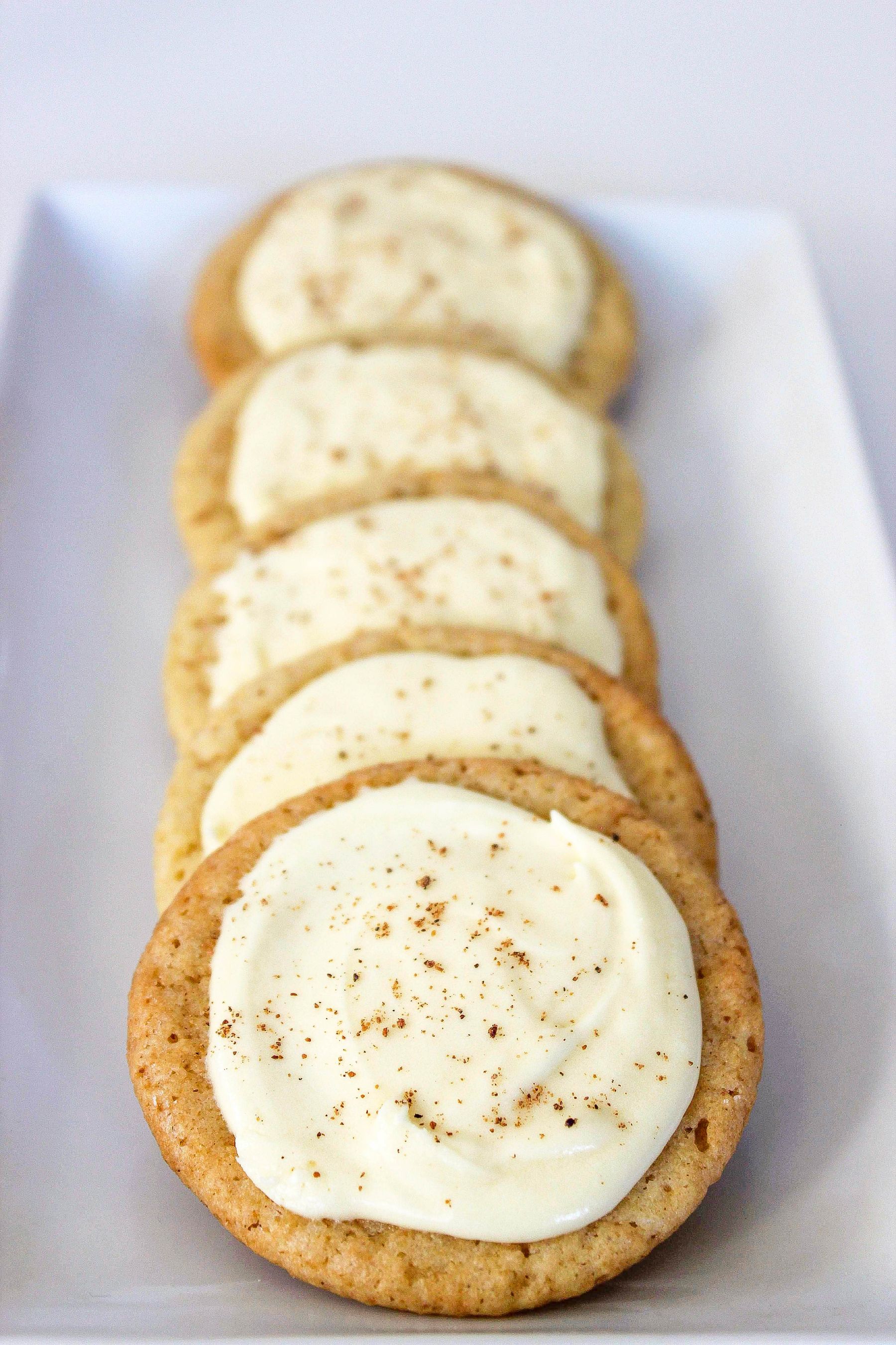 Eggnog Cookies with Eggnog Buttercream: Chewy eggnog cookies topped with a rich eggnog buttercream. Your favorite holiday beverage in cookie form!
