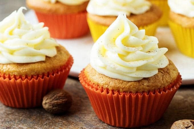 Spiced eggnog cupcakes topped with creamy, eggnog flavored buttercream frosting. They're a festive and simple holiday treat for kids and adults.