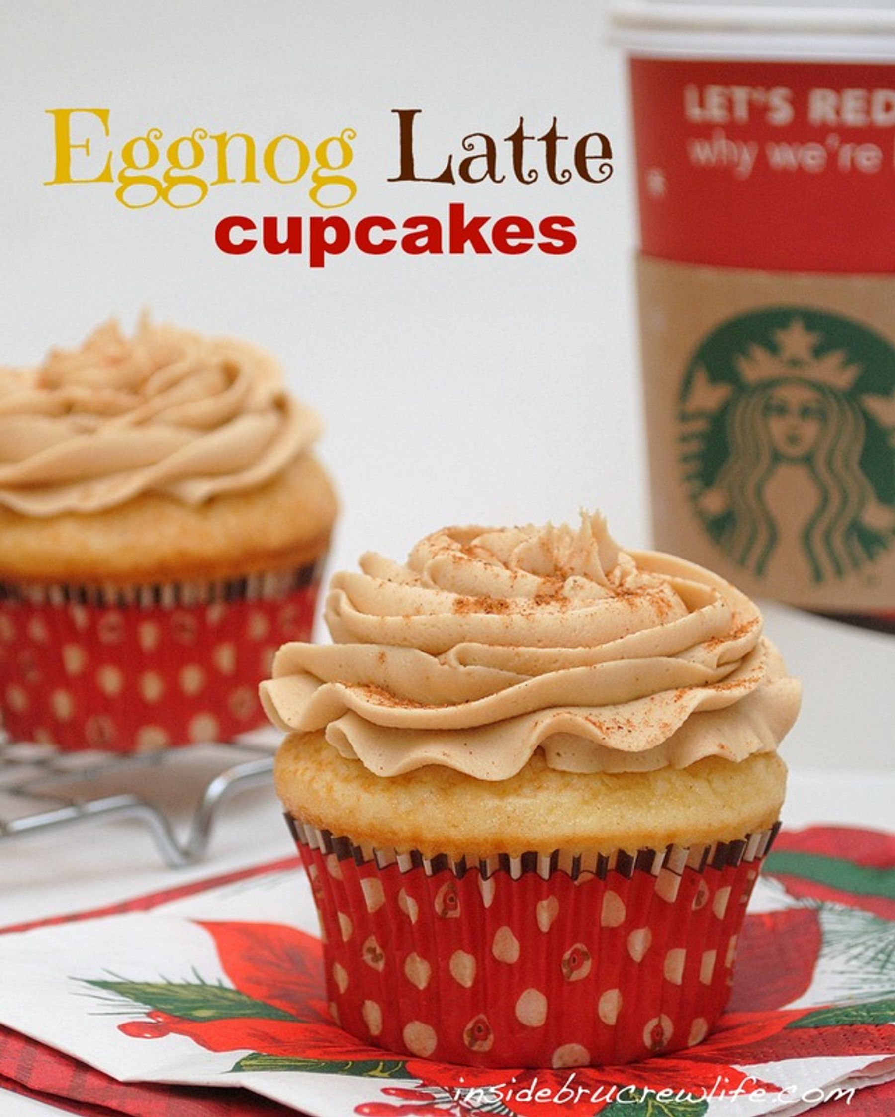 Vanilla cupcakes made with eggnog and topped with a coffee butter cream