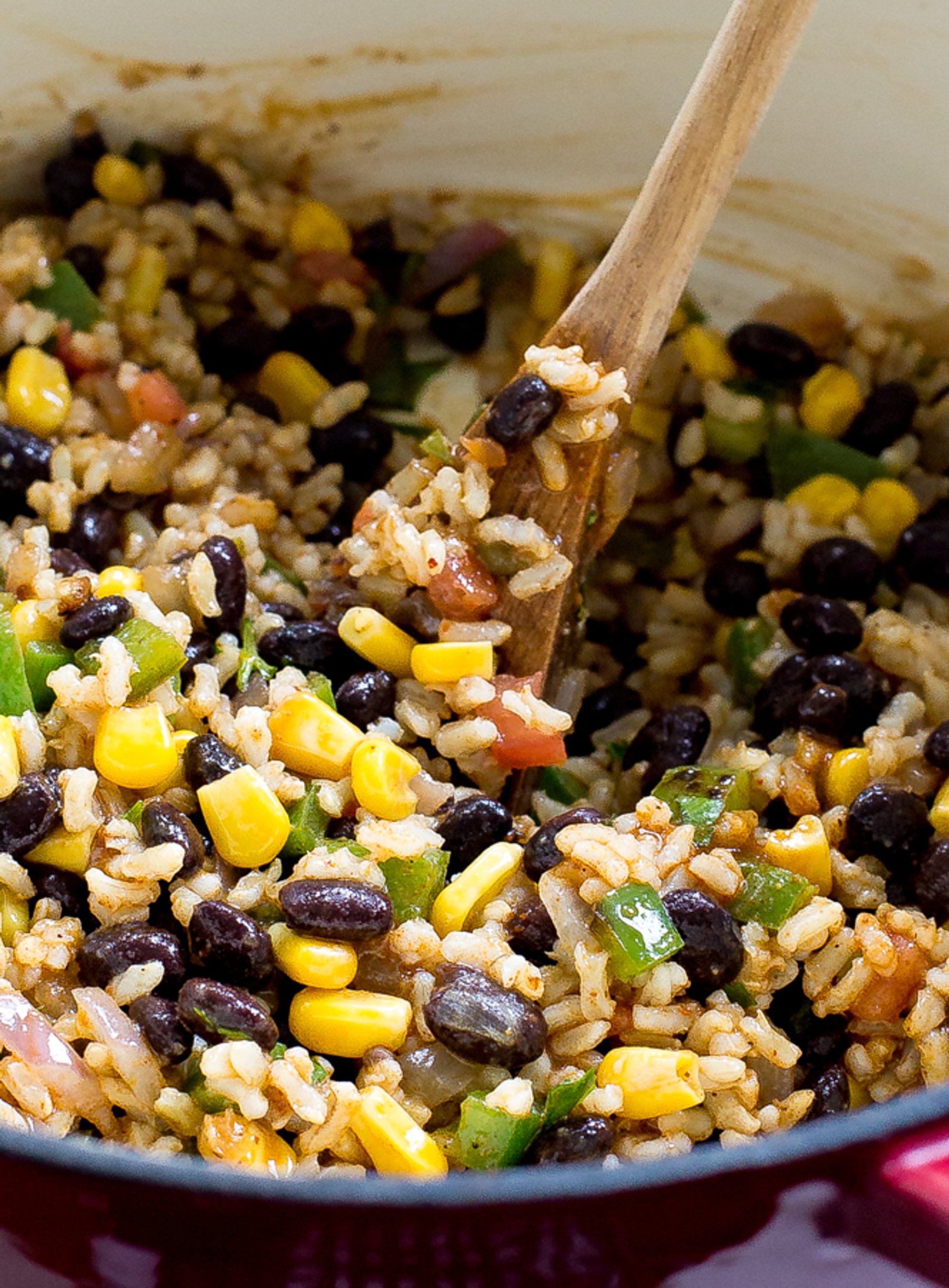 Super Easy Enchilada Rice made with homemade enchilada sauce! Loaded with onions, black beans, corn, bell pepper and salsa. The perfect side dish!