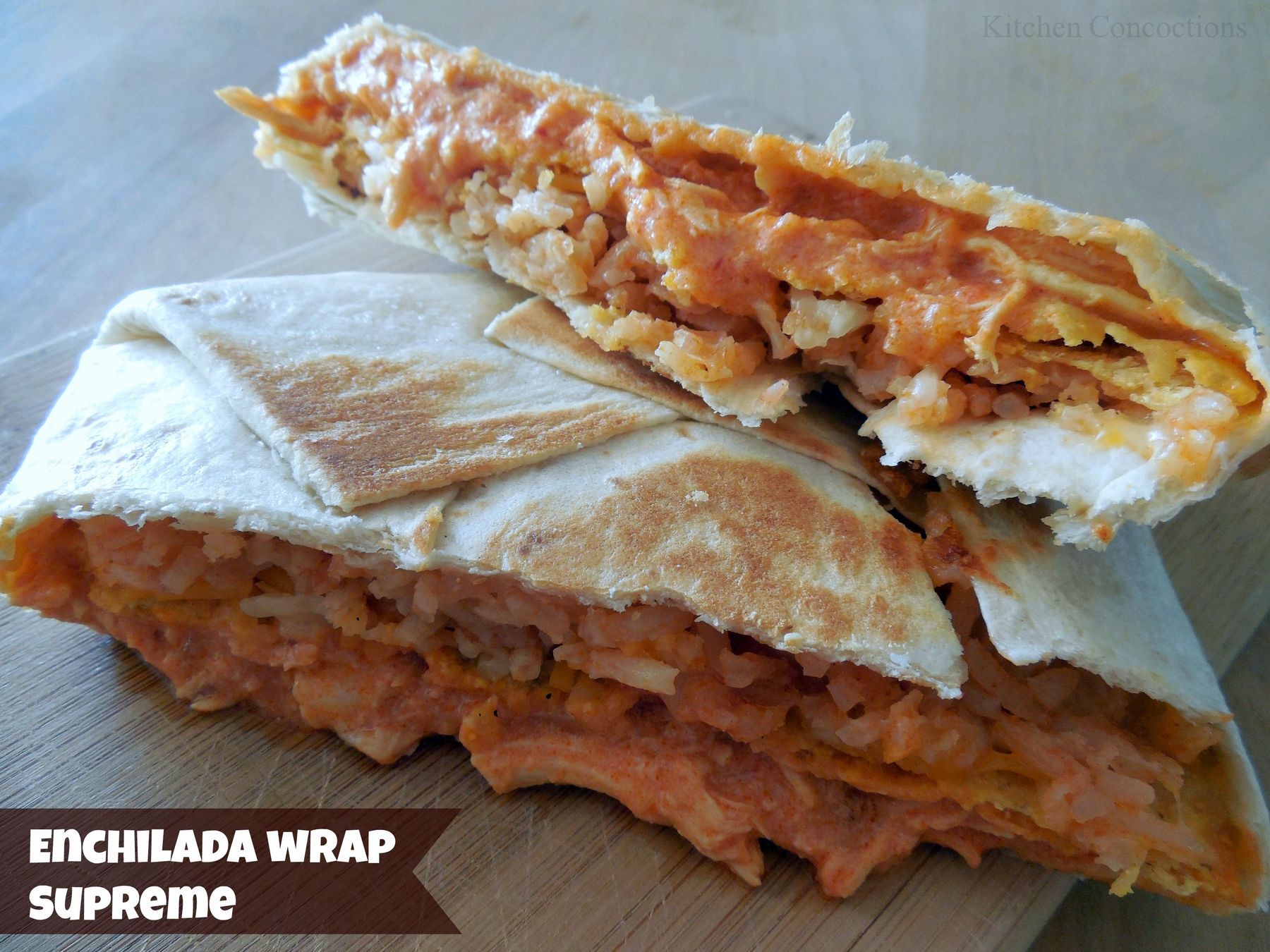 I decided, rather than trying to duplicate the oh-so-amazing crunch wrap, why not just use it as inspiration! I have a new favorite enchilada recipe using Chicken Tinga. This makes one great enchilada! Then add a little Spanish Rice, some cheese, a tostada and a tortilla and you have the perfect Enchilada Wrap Supreme!