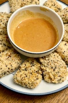 Everything Bagel Chicken Tender with Maple Mustard Dipping Sauce