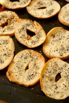 Place the bagel slices onto a large baking sheet.