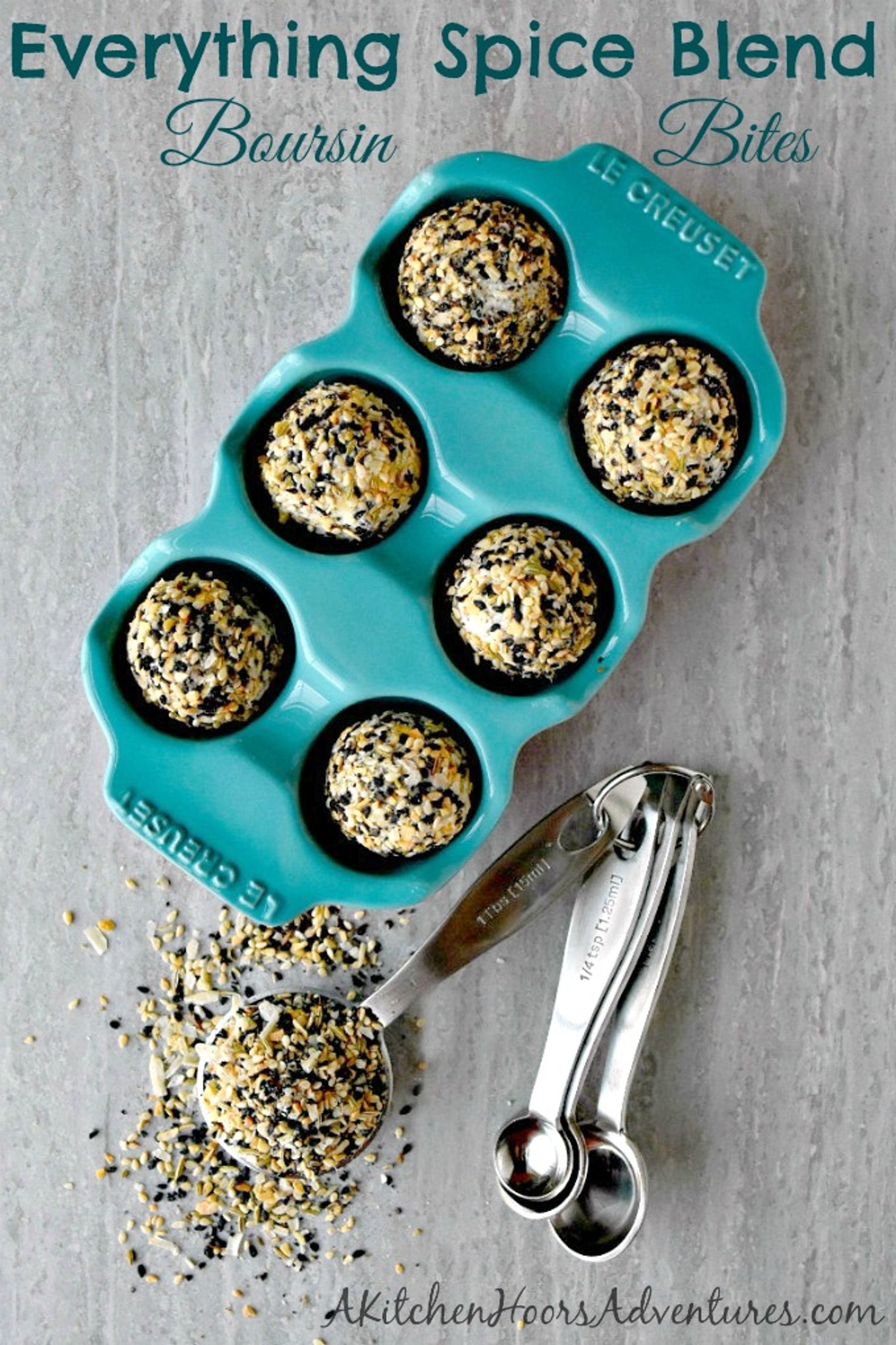 This spice blend packs a flavor punch! Everything Bagel Spice Blend Boursin Bites have that fave bagel flavor with creamy, herbed Boursin cheese inside. The perfect little pop of flavor-plosion you will love!