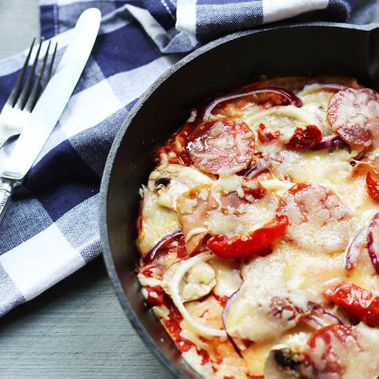 You will be surprised how easy it is to make this bar style double tortilla pizza. The crust is extra thin and crisp and it is big enough to eat with two or on your own.