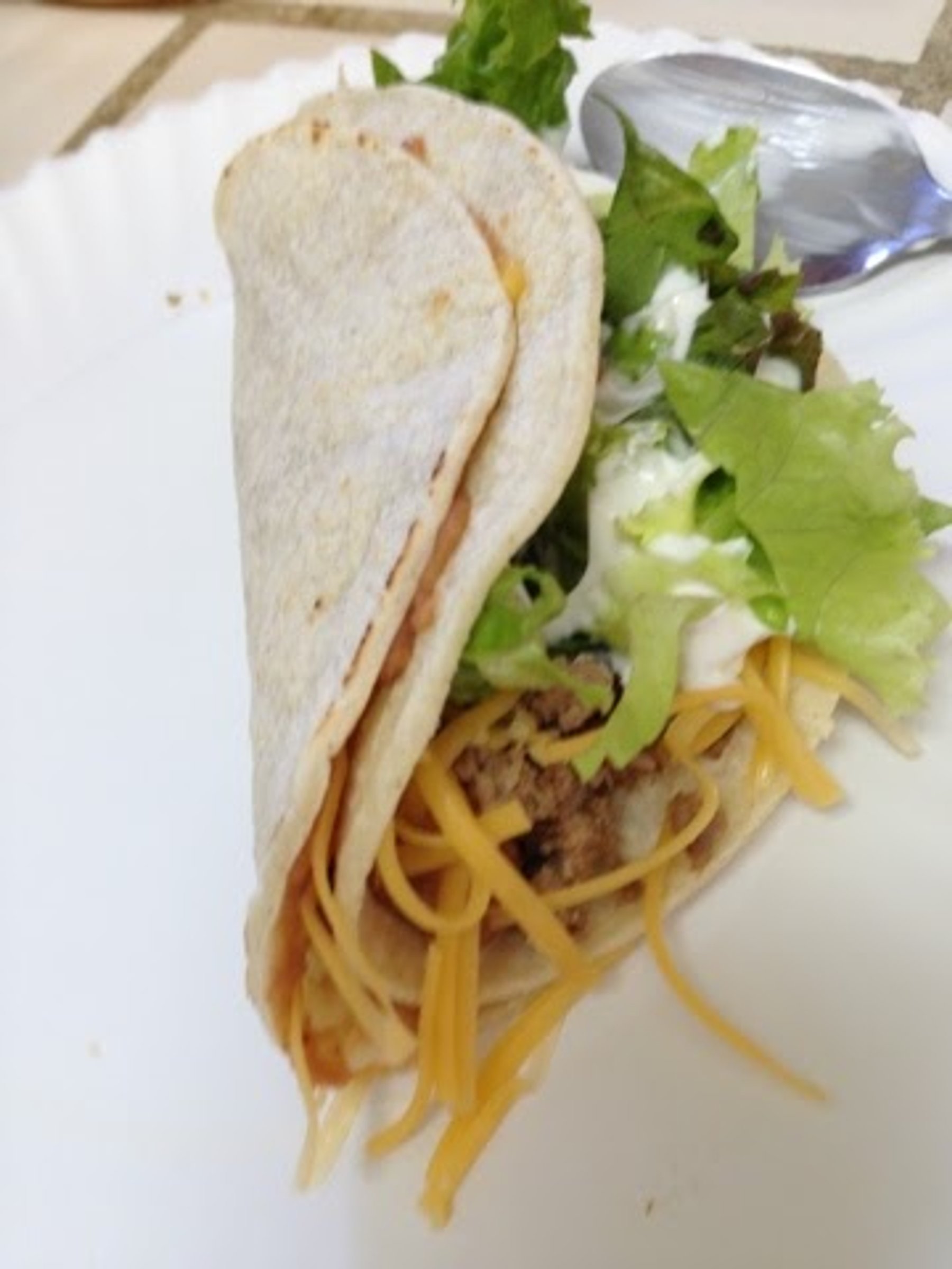 while browing meat, , empty refried beans into a pot and heat over medium low heat, chop up lettuce, shred cheese, and heat...