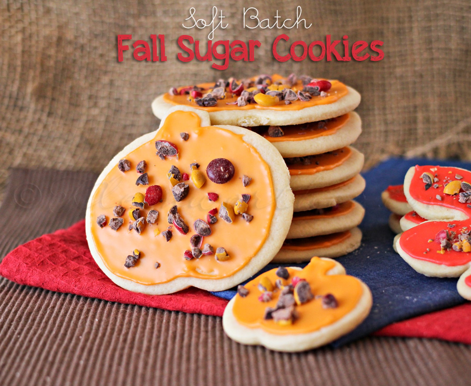 Soft Batch Fall Sugar Cookies sprinkled with crushed M&M's