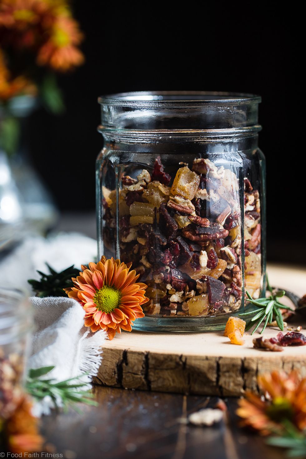 This quick and easy, protein-packed fall trail mix recipe only uses 6 ingredients! It’s a healthy gluten, grain and dairy free portable snack!