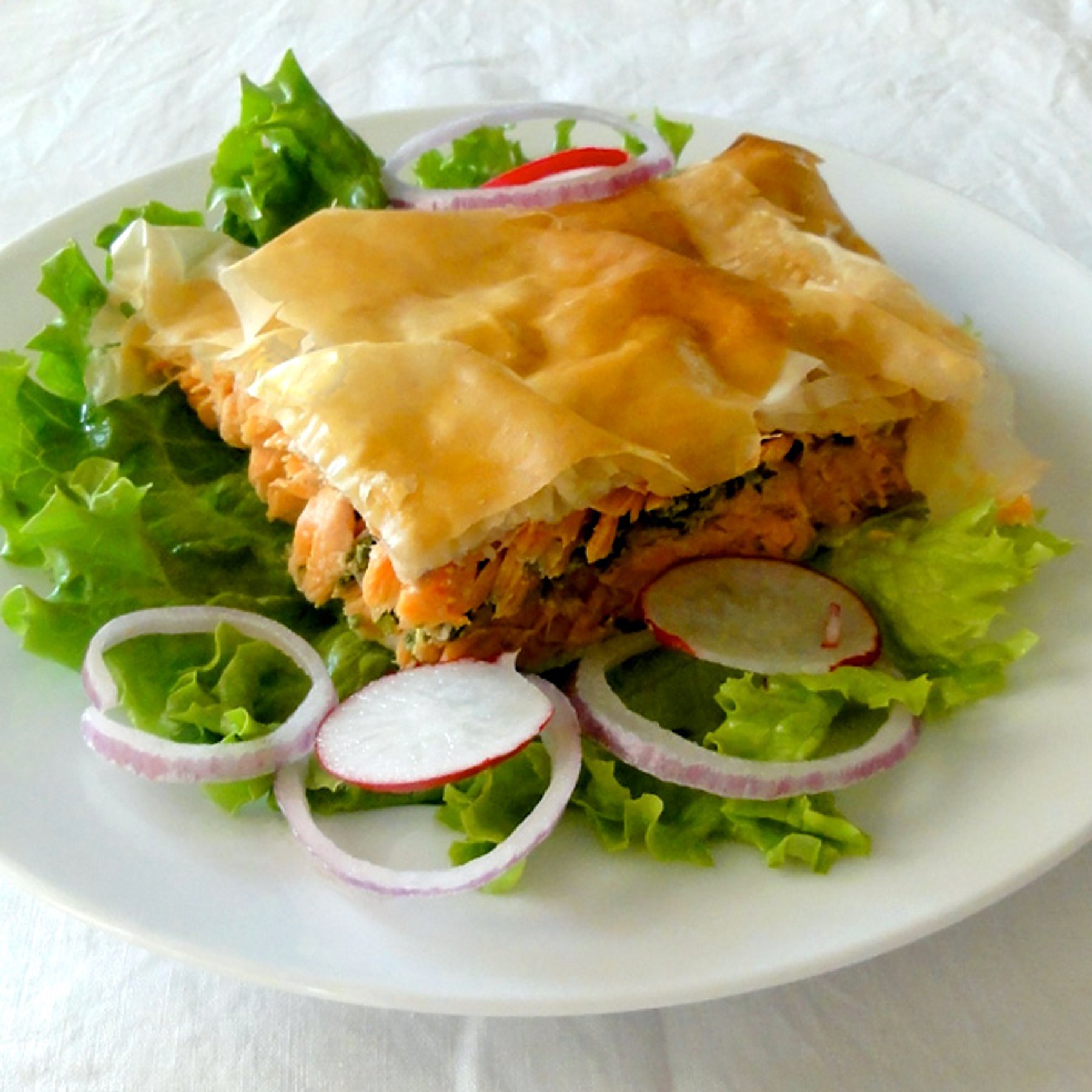 Family Style Pesto Salmon Wrapped in Filo