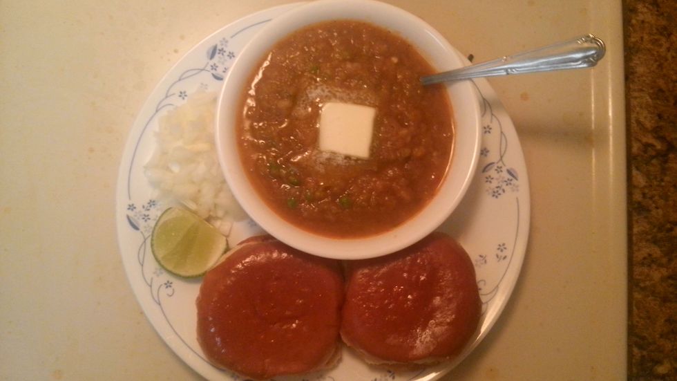 4. Serve bhaji with finely chopped onion, lemon & some butter on the top!