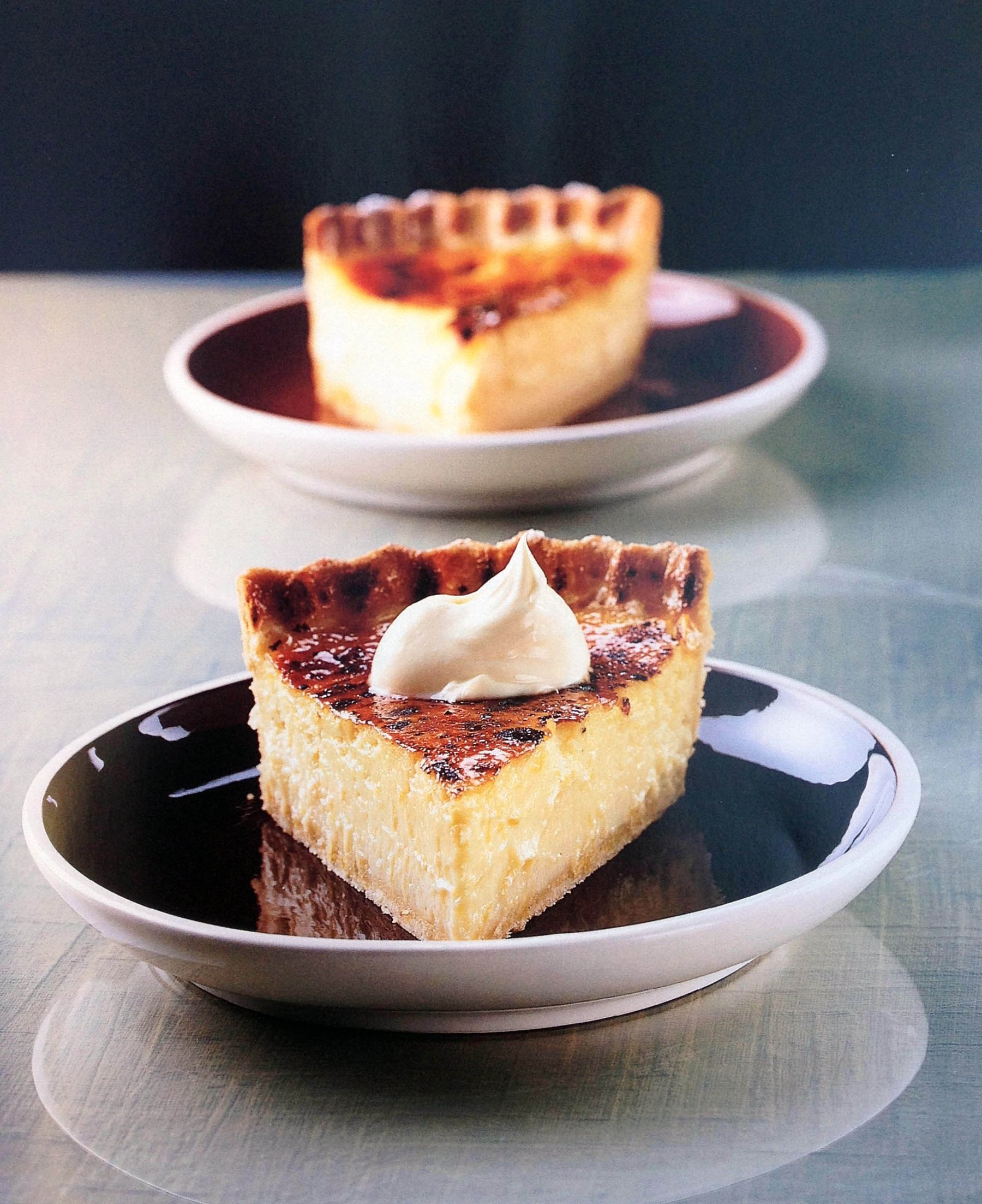 An unusua dessertl, with a crunchy base of pastry and a tasty filling made with goat cheese and lemon. As a final touch, the tart is caramelized to a nice brûlé finish. Serve cold, garnished with a dollop of crème fraîche.
