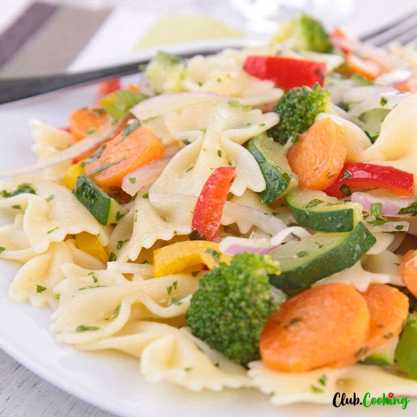This delicious farfalle pasta is cooked under 30 minutes and combines fresh baked vegetables, lemon juice, sour cream and herbs which create a delicious flavor. It's also very aesthetically pleasing, with lovely bow tie pasta and colorful veggies.