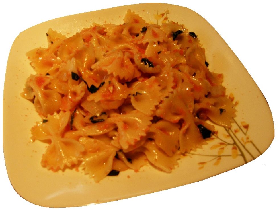 Heat olive oil, sauté garlic, onion and basil for about 3 minutes. Pour over farfalle and mix.
